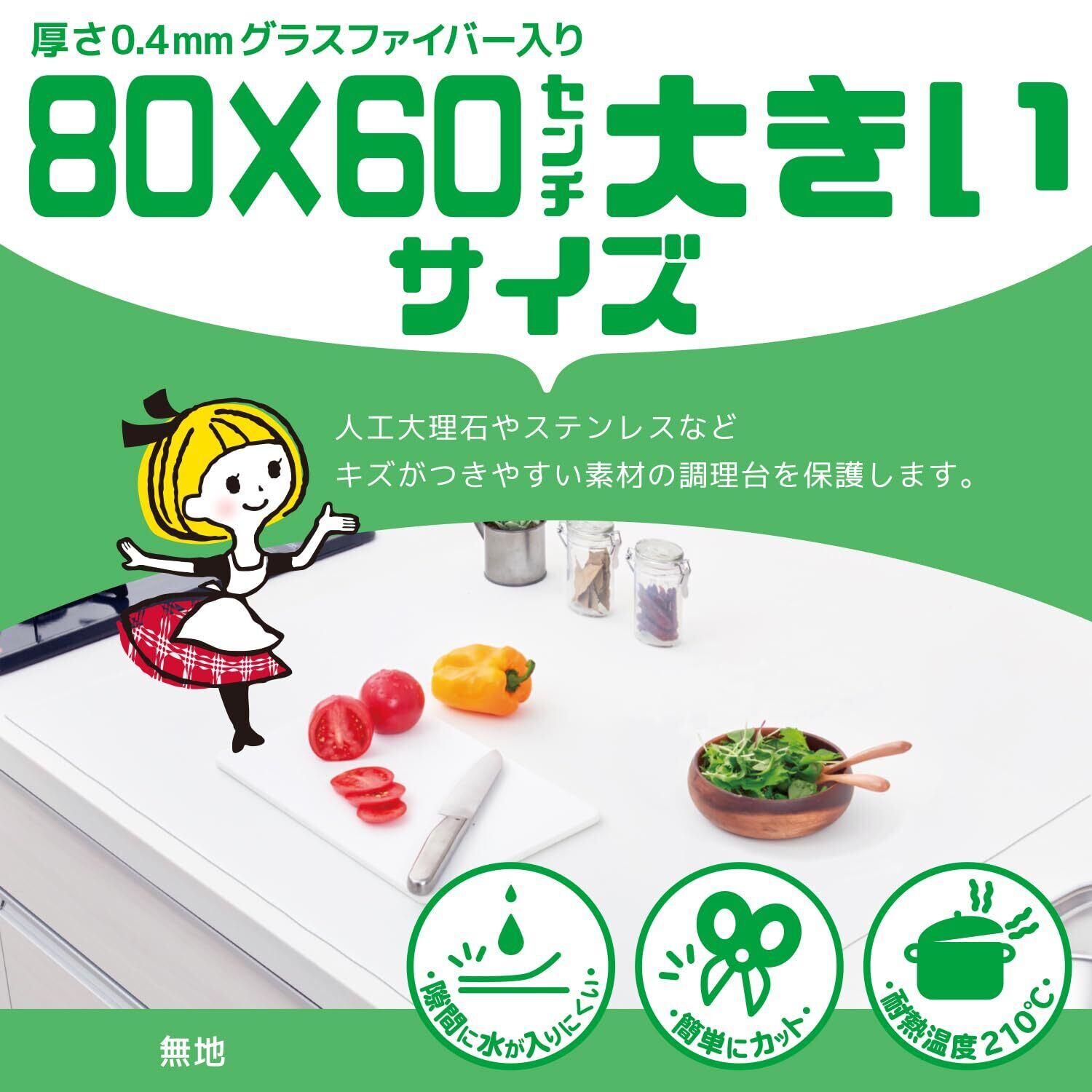 アール(R) ペタッと吸着シリコン調理台保護マット 予防掃除 無地 60×80×0.04(cm) 薄型 耐熱温度210℃ カットできる 汚れ防止 SM-504