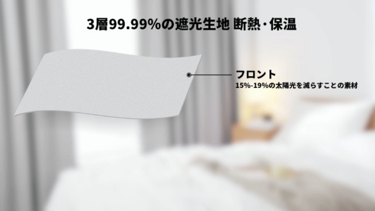 ◆【三重織り技術】生地は三重構造のテクノロジーの技術利用して黒い系を織り込んでいるから、優れた遮光機能が備えております。きちんと室外からの日差しや紫外線などをしっかり遮られる機能付きの厚地遮光カーテンです。