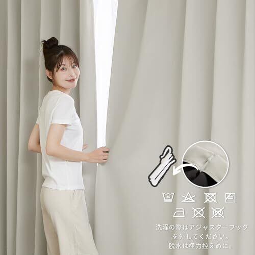 【特価セール】Hansleep カーテン 4枚セット 遮光カーテン 1級遮光 ベージュ 幅100cm丈178cm 断熱 防寒 防音 省エネ 無地 洗える 寝室 リビング用 (ドレープカーテン2枚・レースカーテン2枚)
