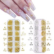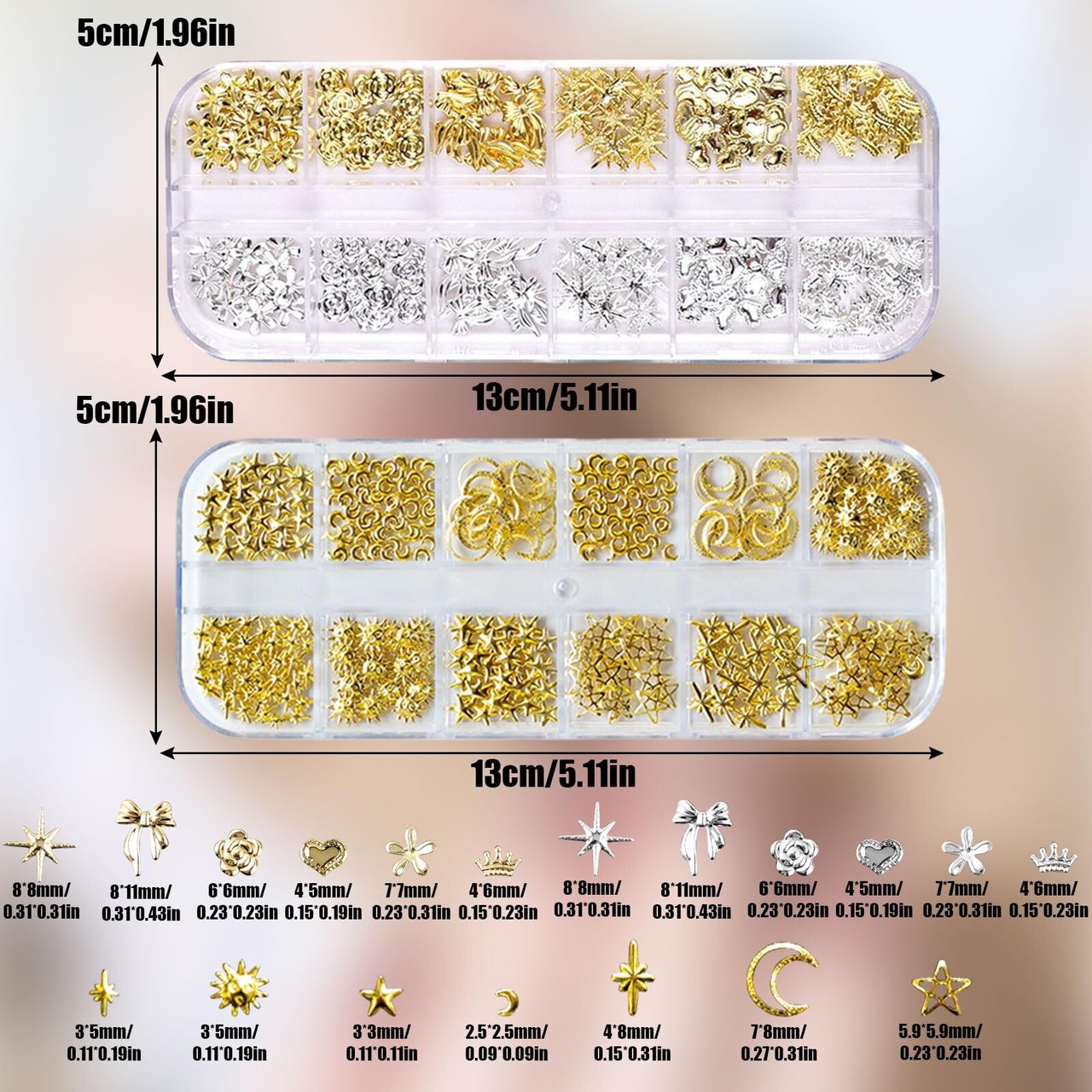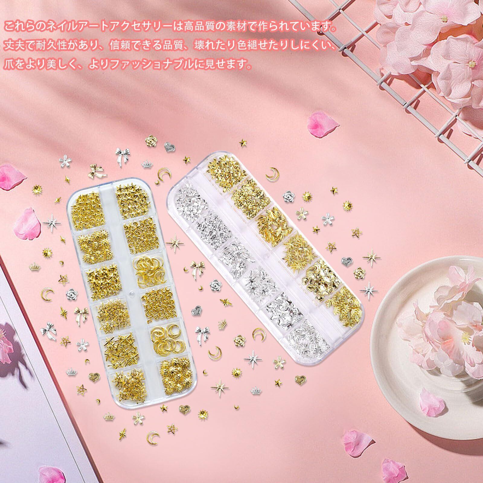 【ネイルパーツ】大人気なネイルスタッズセットが登場!リボン、星、月、ハート、花、王冠など、いろいろな種類のパーツが用意されており、ネイルデザインに輝きと魅力を加え、ネイルをより美しく華やかに見せます!