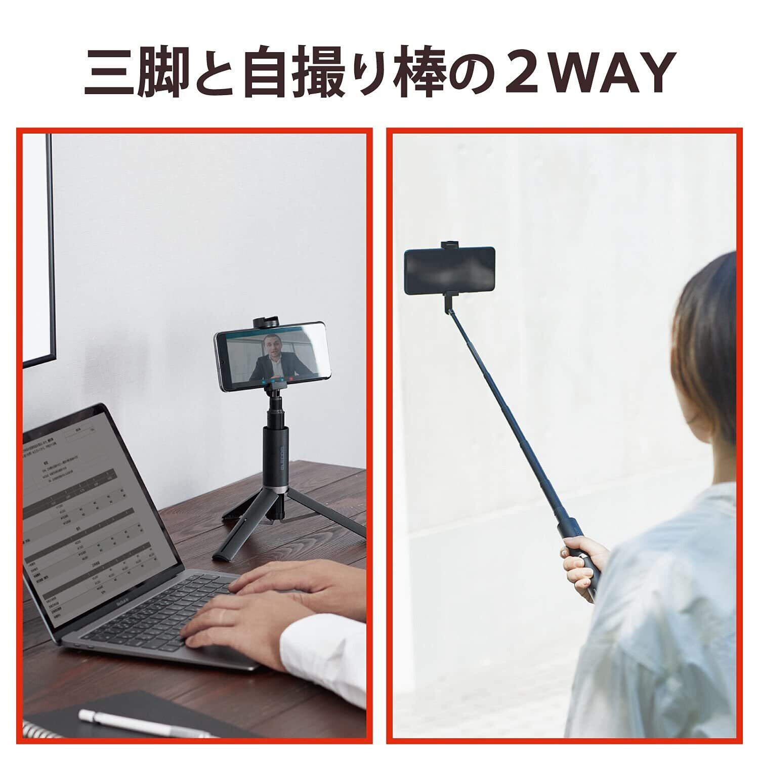 ■ 自撮り棒としても使用できる2Wayタイプのスマートフォン用三脚です。