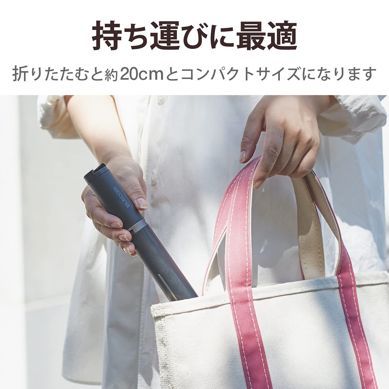 ■ スマートフォンホルダーを三脚に収納すると約200mmとコンパクトになり、持ち運ぶのに便利です。