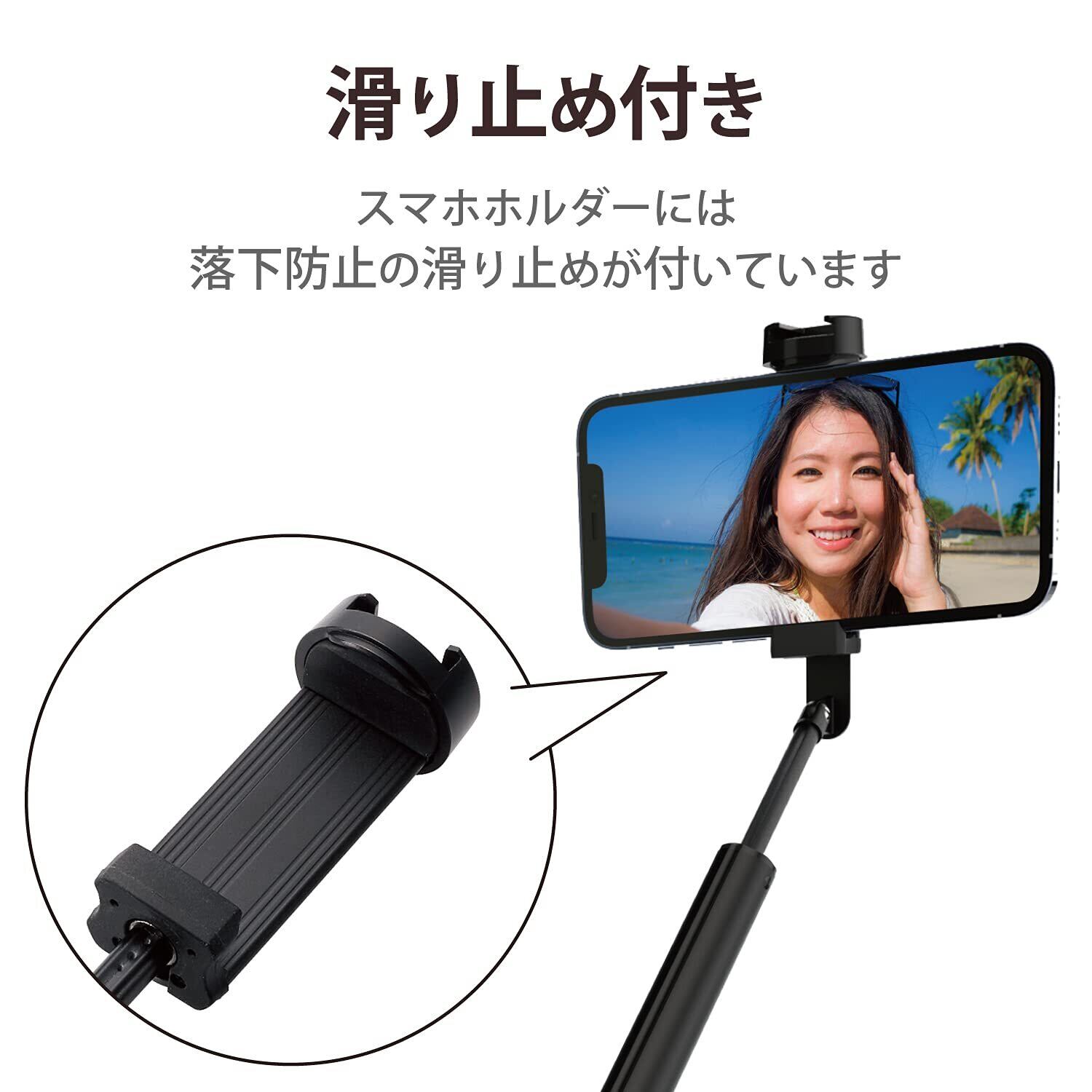 ■ スマートフォンホルダーには落下防止のすべり止めがついており、落下のリスクを軽減します。