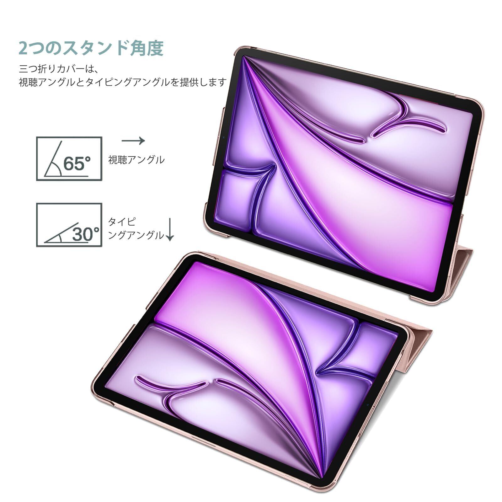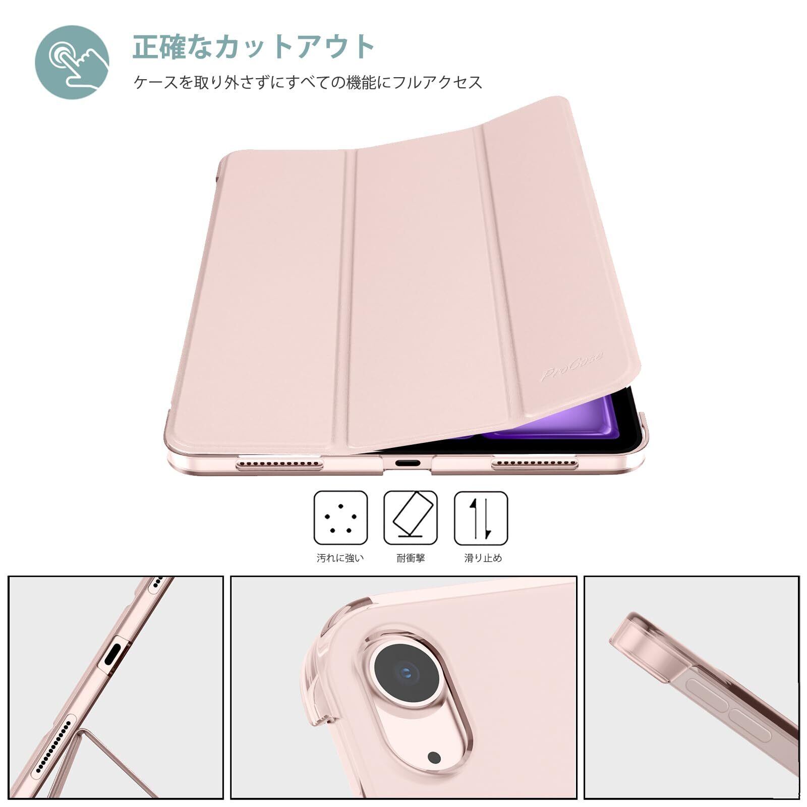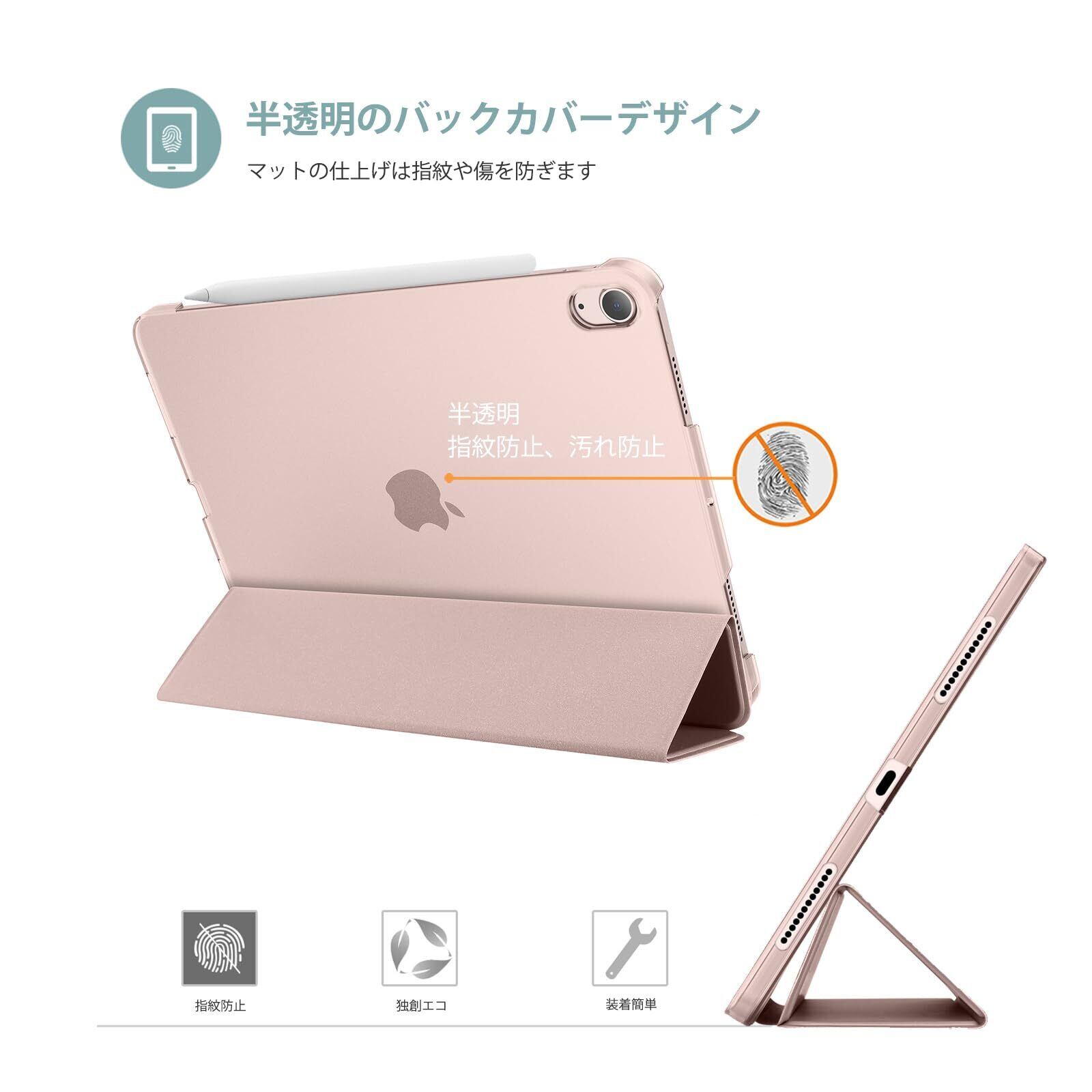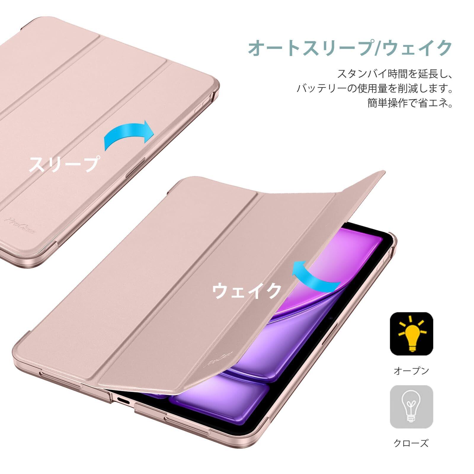 【在庫処分】ProCase iPad Air 11インチ ケース M3 (2025) / M2 (2024) / iPad Air 第5世代 / 第4世代 軽量 スタンド 三つ折り フォリオ保護ケース 半透明バックカバー Apple Pencil 2対応 対応端末:iPad air 11インチ M3 (2025)、M2 (2024)、iPad Air5 2022、Air4 2020 - ピンク