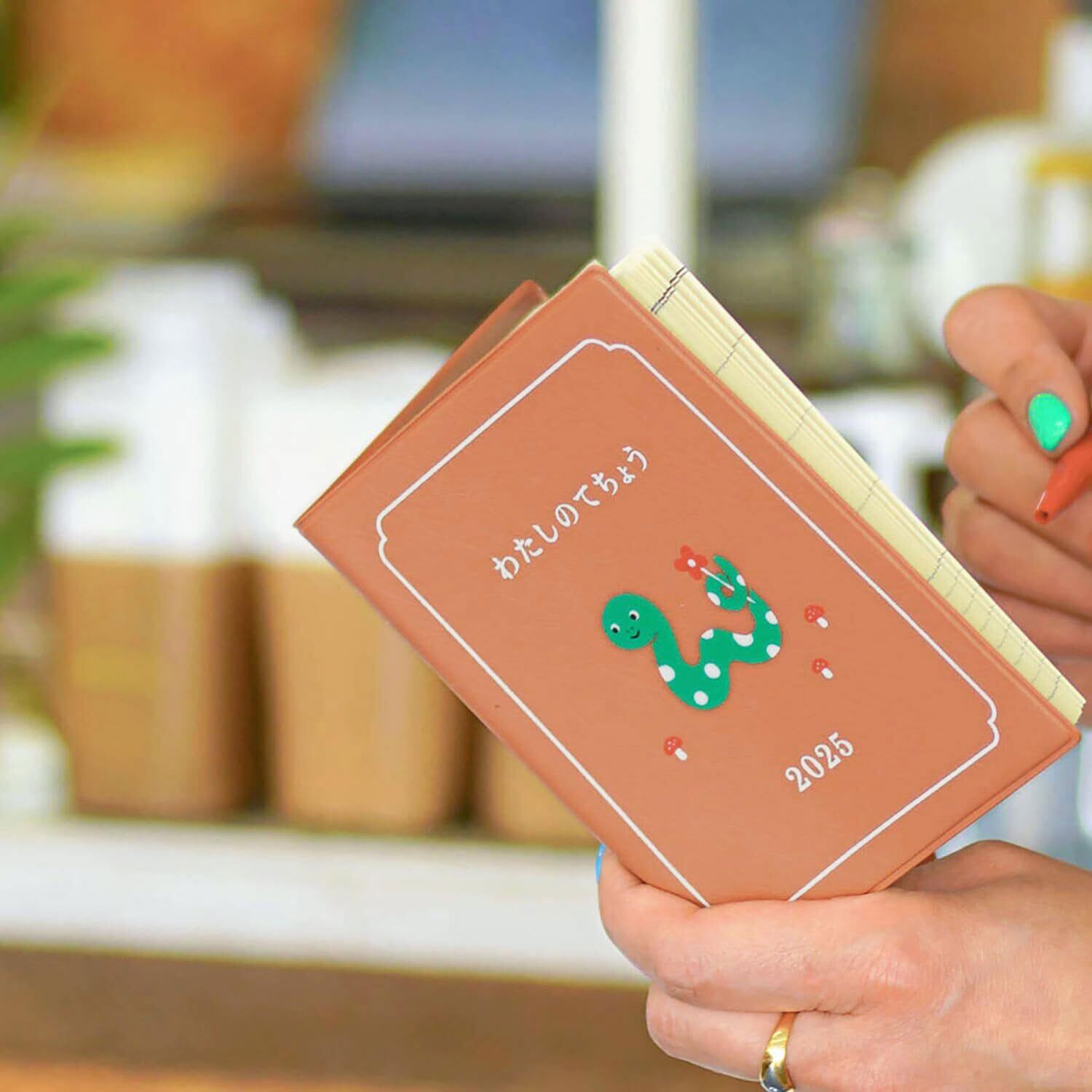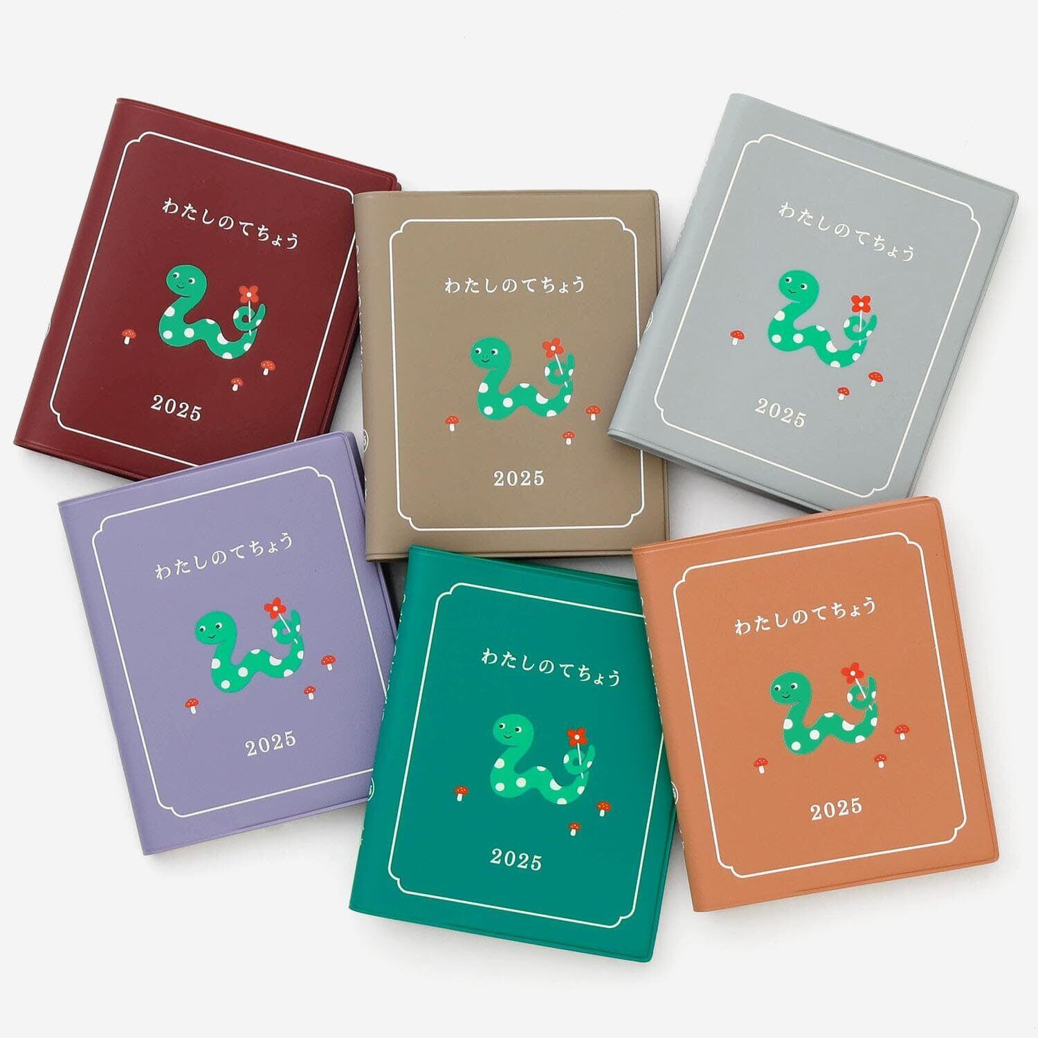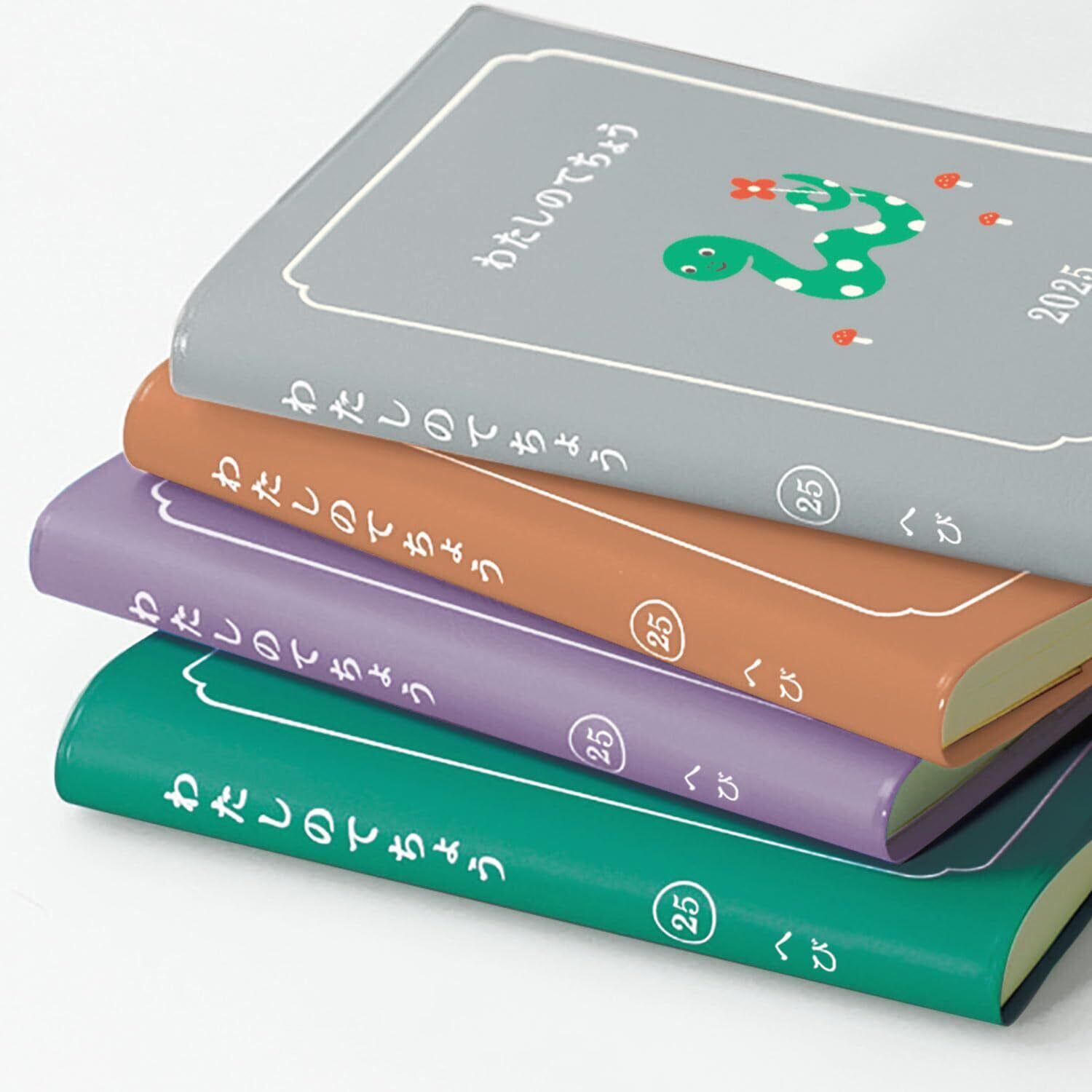 干支シリーズとして展開する、わたしのてちょう。巳(へび)がお散歩しているイラストが愛らしい、絵本のようなダイアリーです。明るいミントグリーンの刷り色と落ち着いたカバーの色合いが大人かわいい1冊。タイトルのように「わたし」の2025年を綴ってください。