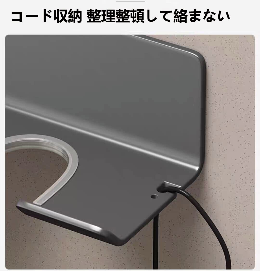 コンセント収納機能付き:このドライヤーホルダーには、コンセント収納機能が付いており、電線プラグを収納することができます。美しい見た目を維持しながら、スッキリと収納できます。