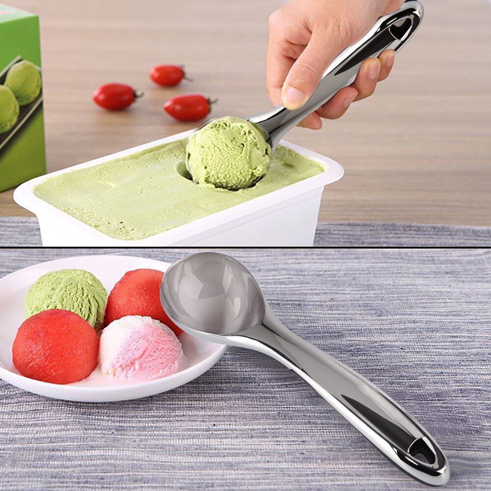 一体化のデザインで、接続部分が無いので、断裂、劣化などの心配がありません。アイスクリームだけでなく、フルーツポンチやポテトサラダの盛り付け、味噌をすくう際にも活躍します。
