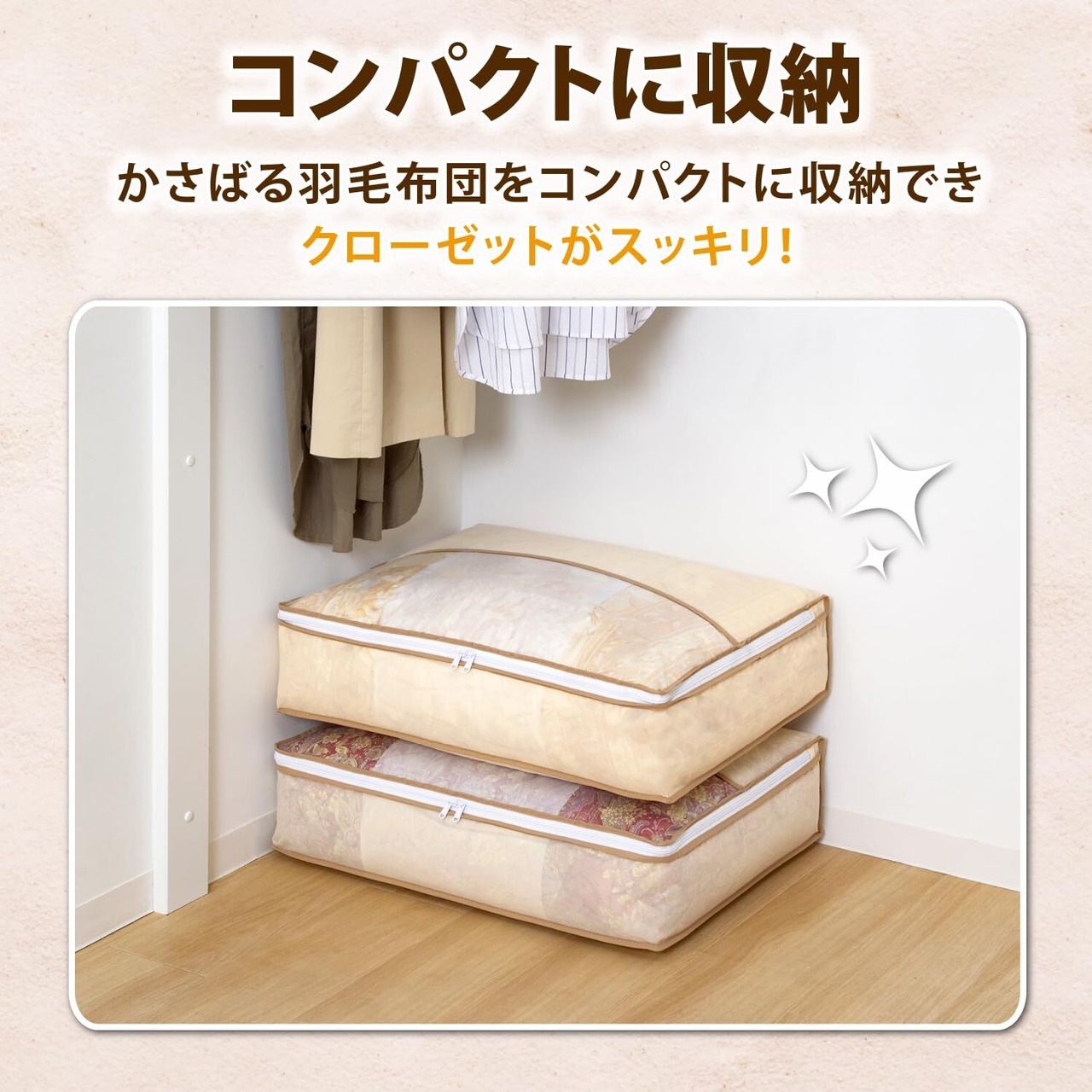 商品名:羽毛布団を小さく収納するケース ベージュ 2枚組