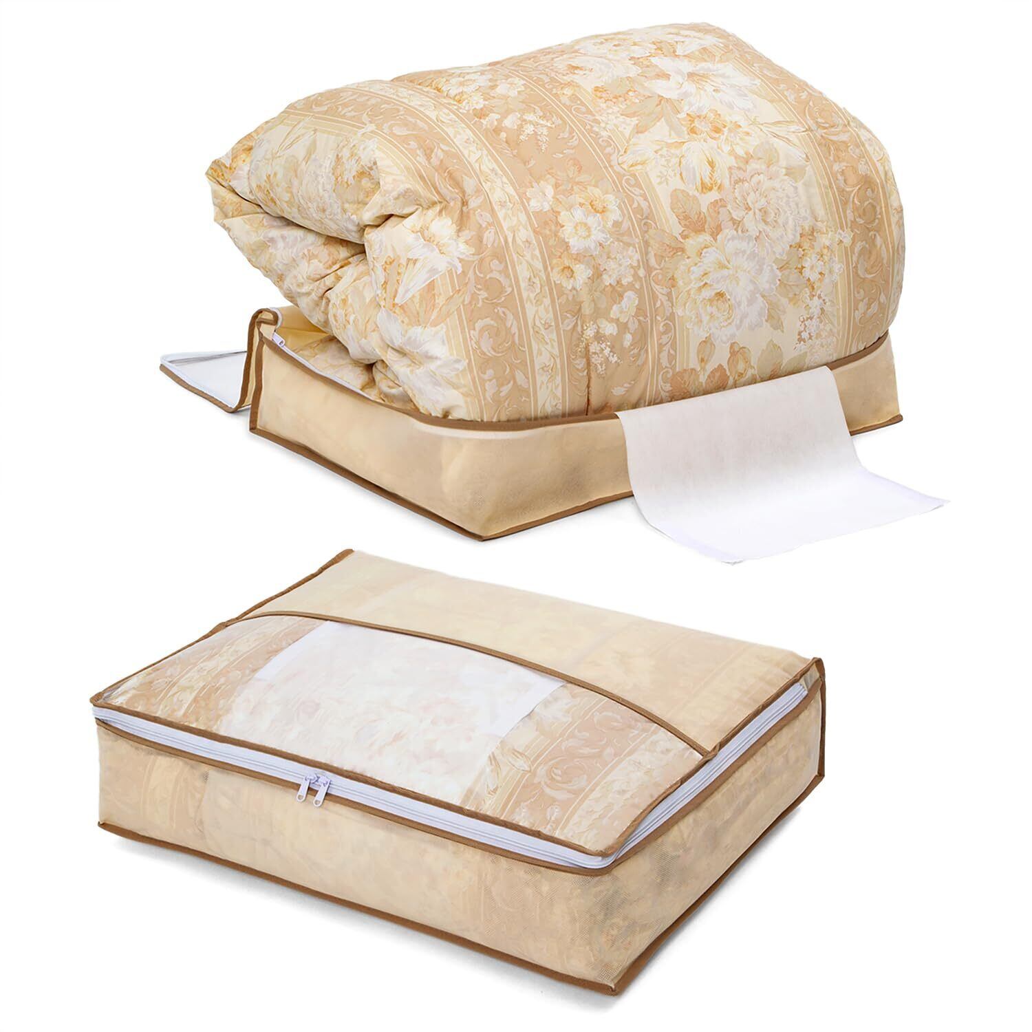 【在庫処分】アストロ 羽毛布団収納袋 2枚組 シングル 軽圧縮 押さえベルトでとめるだけでコンパクト収納 通気性の良い不織布がホコリなどの汚れをガード 透明窓付き 布団収納 布団袋 収納ケース 圧縮袋 薄型 ベージュ 131-45