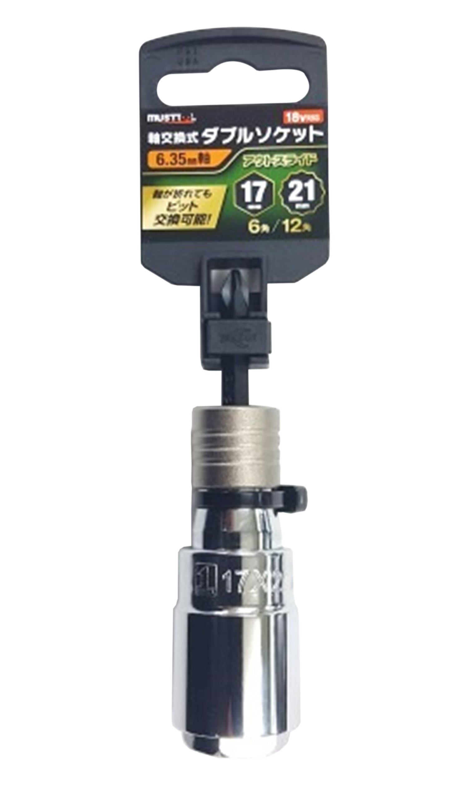 【特価セール】イチネンアクセス MUST TOOL(マストツール) ソケット IM-1721O-612K 軸交換式ダブルソケット 17/21mm 6/12角 19704 6.35mm軸 アウトスライド