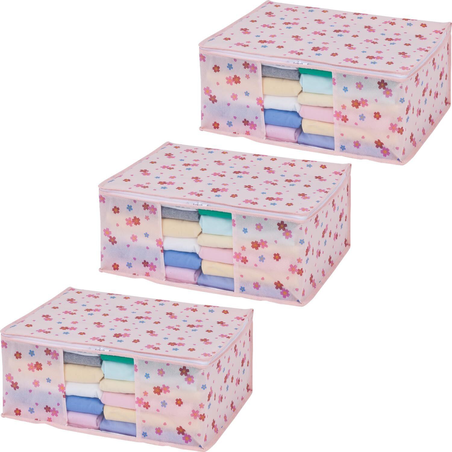 アストロ 収納ケース 衣類用 ピンク さくら柄 3個組 不織布 収納袋 衣装ケース 透明窓付き 197-01