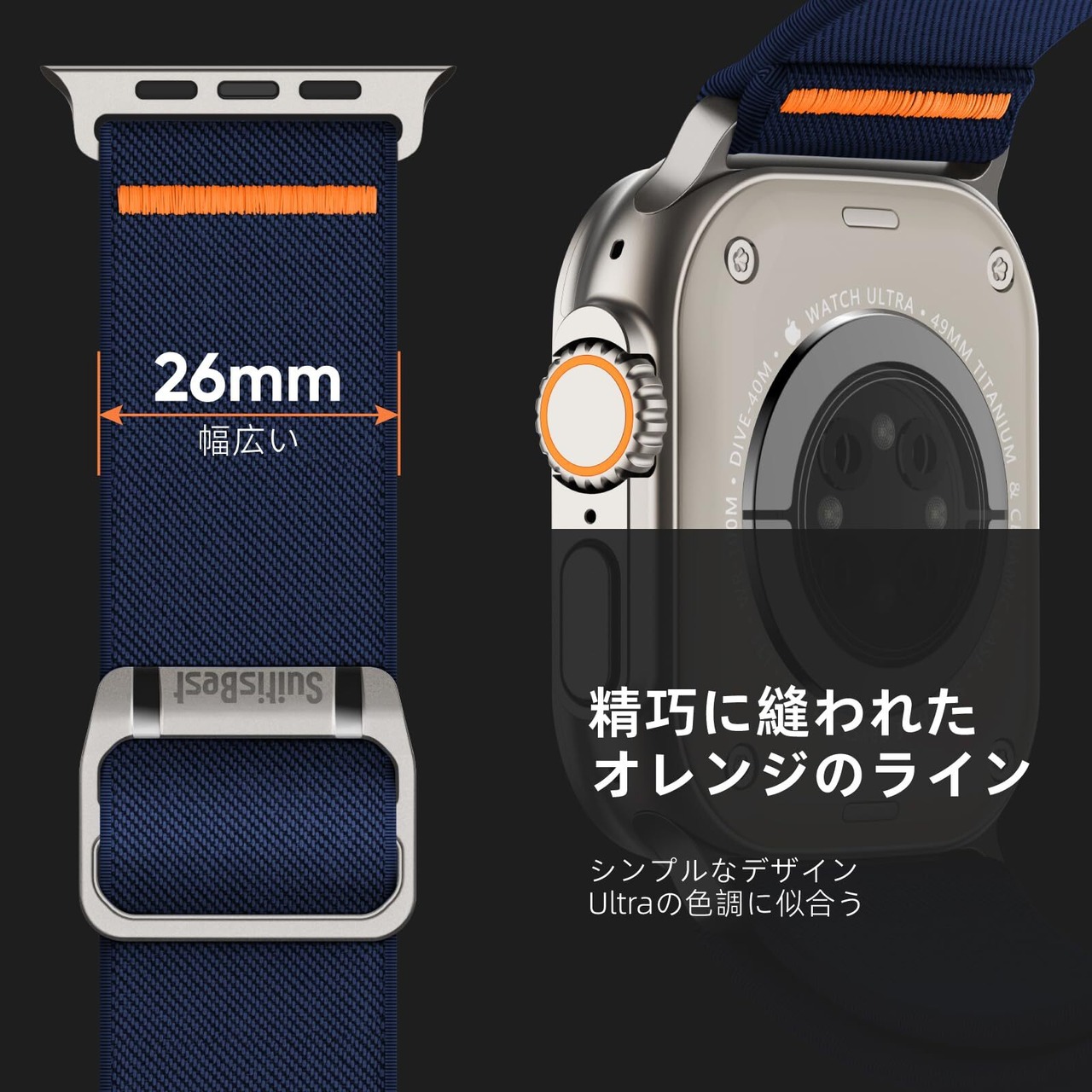 【幅広設計】男性向けの26mm幅広に仕上げたApple Watchバンドです。幅広のデザインでUltraによく似合って、腕にフィットしている安定感もあり、激しいスポーツをしてもアップルウォッチ落下の心配もないです。 Ultraの色調にも似合って、かっこいい見た目です。
