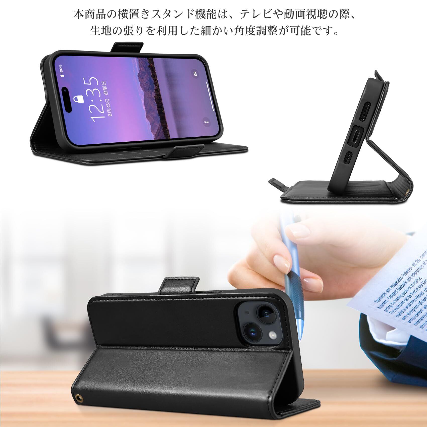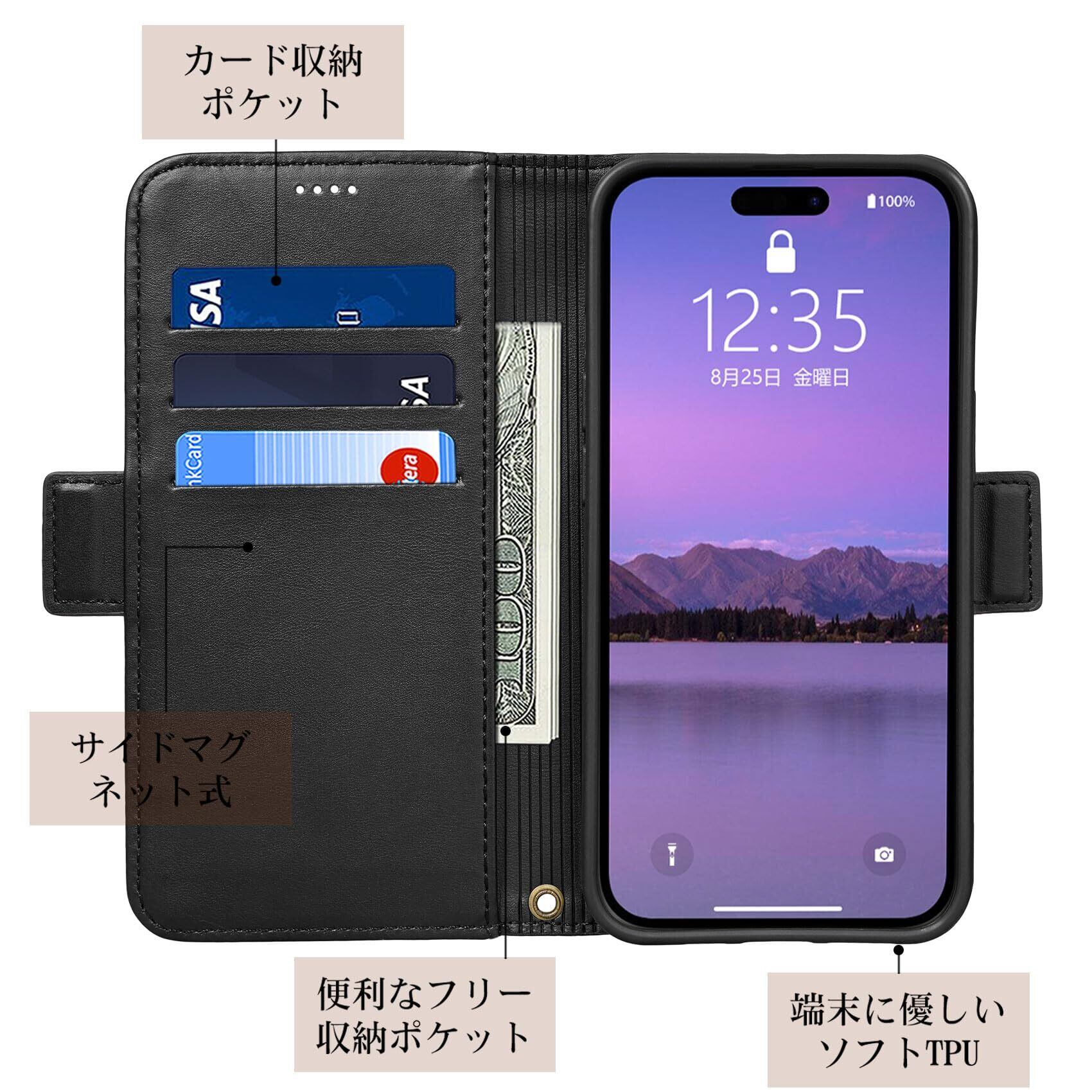 【高品質な素材】本商品は厳選された高品質なPUレザー+柔らかTPUカバーと組み合わせ、軽くて薄い感じがします、素材の表面に手触りは非常に良いフィット感を与えられます。衝撃吸収と耐摩擦機能があり、全面保護でアイフォン15本体を守り抜きます、汗や指紋が良く防止できる、気楽に使えます。デザインはシンプルであるこそ、携帯の高級感を引き立たせる。
