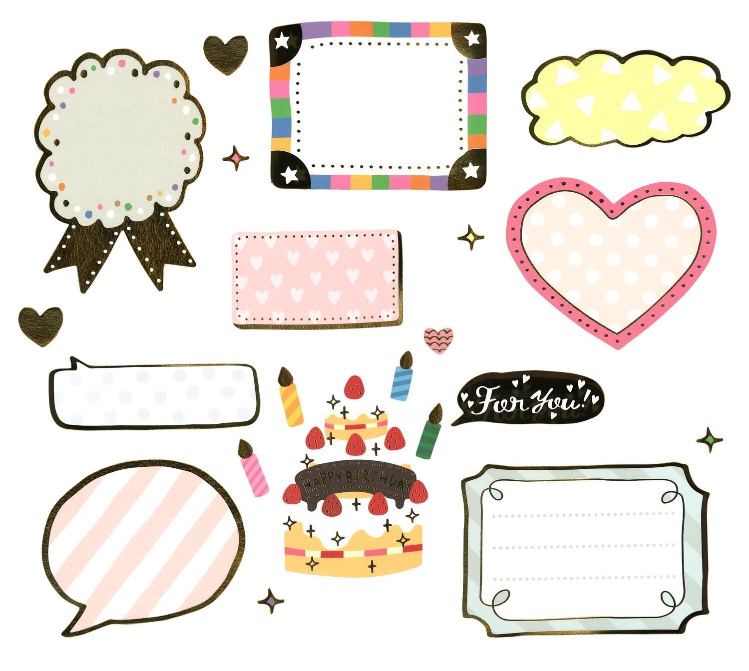 金箔を使用したかわいいデザインのハート、ケーキ、吹き出し、ロゼットなどバラエティーにとんだメッセージシールセットなので、様々な用途に合わせて使えます。