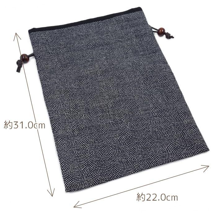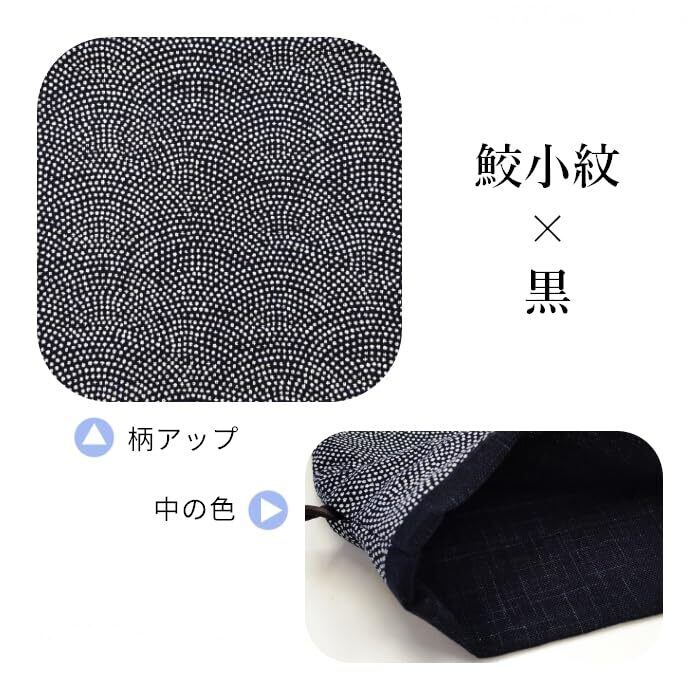 手作り工房FUJITA 巾着袋 裏地付き 和柄 鮫肌小紋×黒 日本製 御朱印帳袋 御朱印帳入れ
