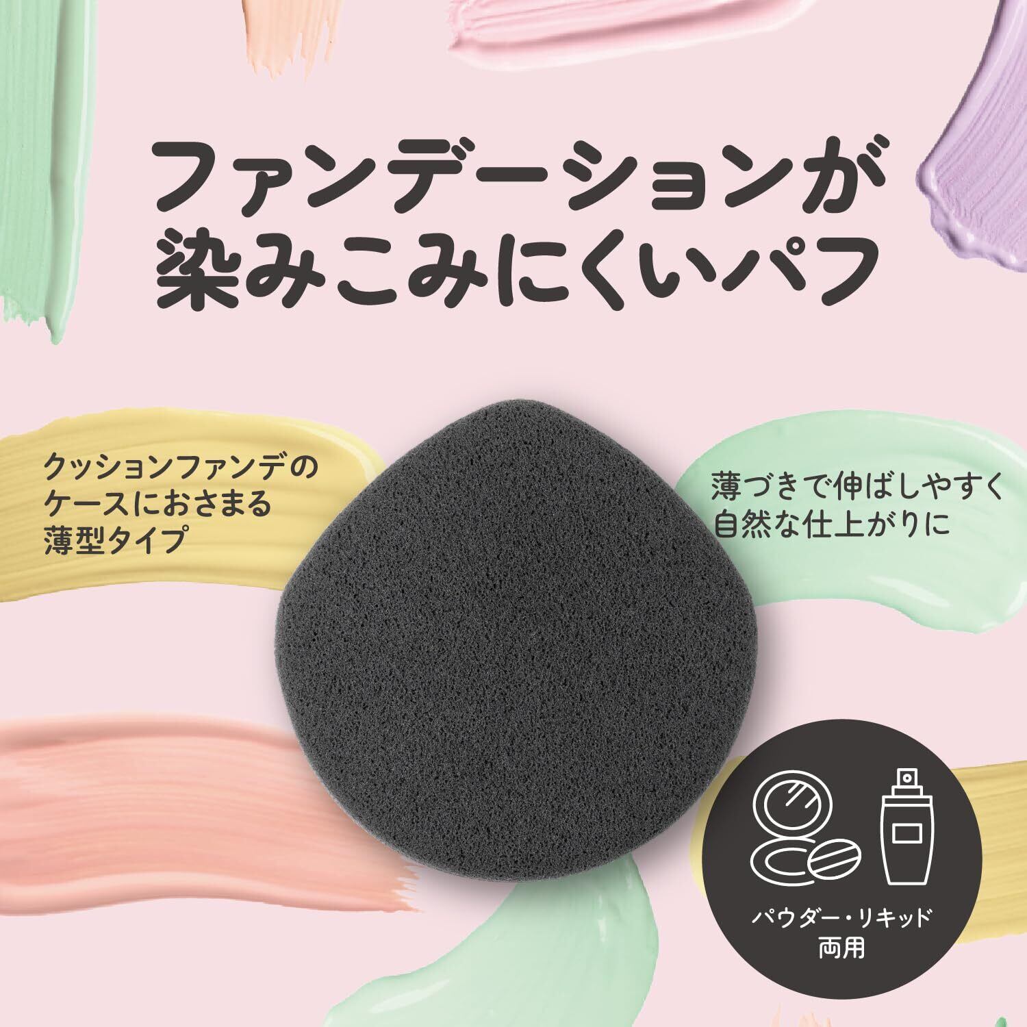 ●リキッドファンデーションが染みこみにくい多層構造。●クッションファンデーションのケースに収まる薄型タイプ。