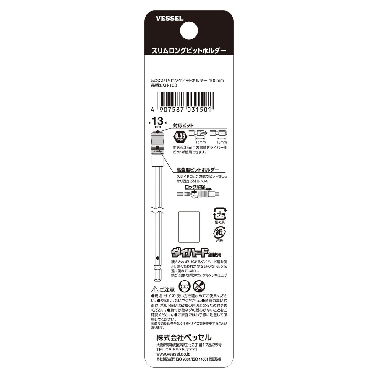 【在庫処分】ベッセル(VESSEL) 40V対応 スリムロングビットホルダー 電動工具用 6.35×100mm EXH-100