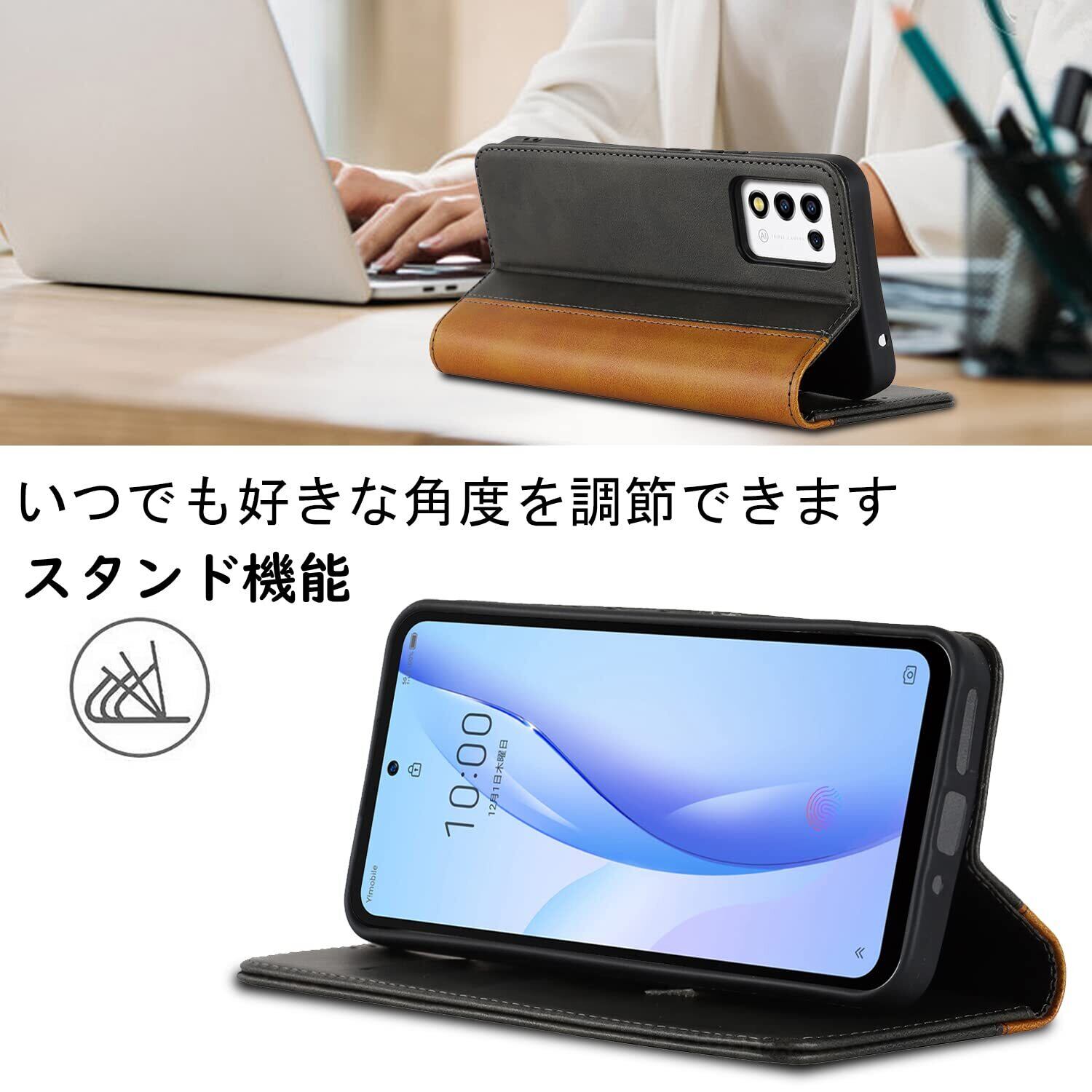 Havaya ZTE Libero 5G III ケース A202ZT ケース 手帳型 docomo libero5g3 スマホケース au 耐衝撃 リベロ5g 3世代 カバー SoftBank カード収納 Y!mobile スタンド機能 レザー -ブラック+イエロー