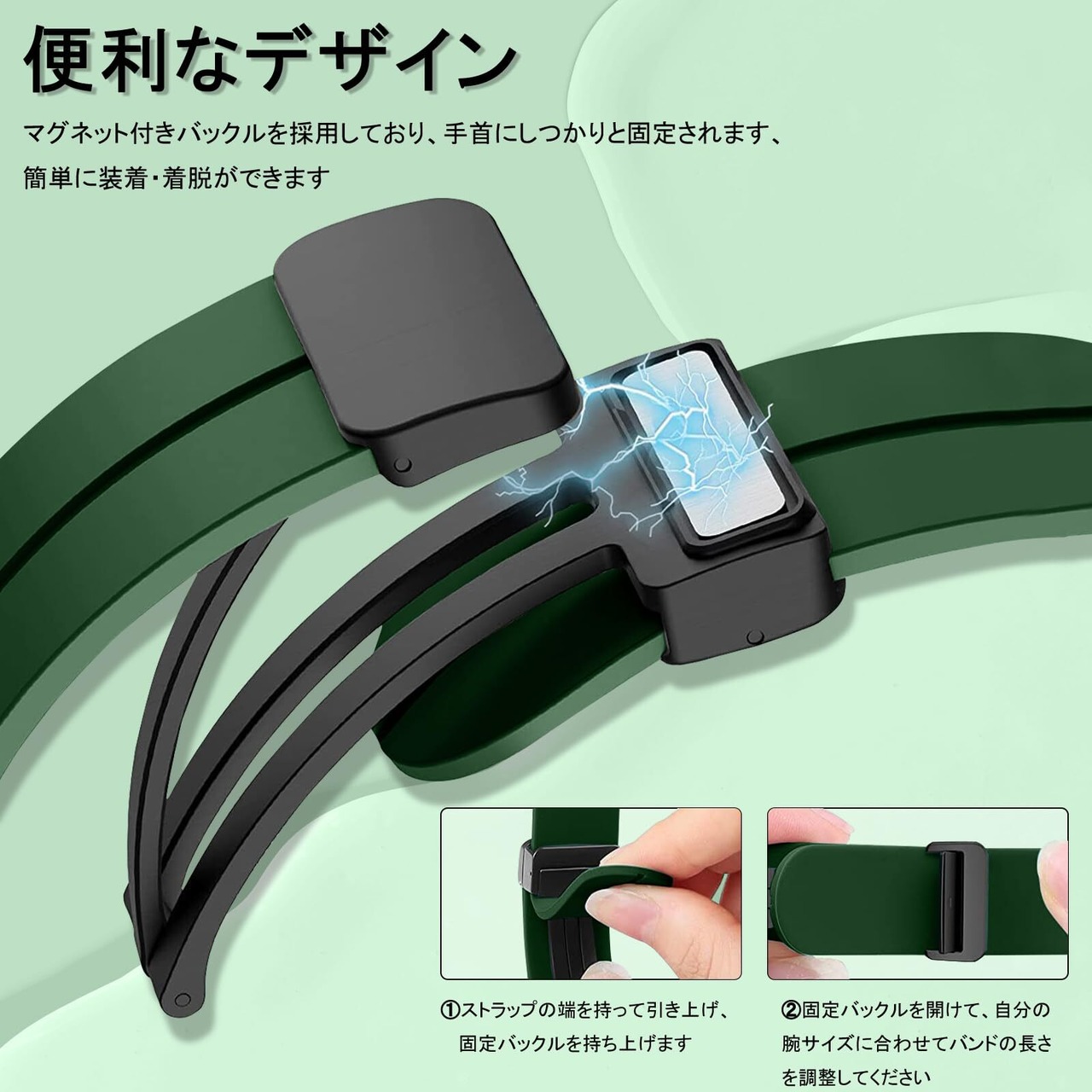 [MosFoil] 時計バンド 18mm 20mm 22mm 交換バンド シリコン製 磁気バックル付き 18ミリメートル 20ミリメートル 22ミリメートル 交換ベルト サイズ調節可能 皮膚にやさしい 軽量 防水 調整簡単 柔らかい 弾力性 18mm 20mm 22mm 替えベルト (22mm グリーン)