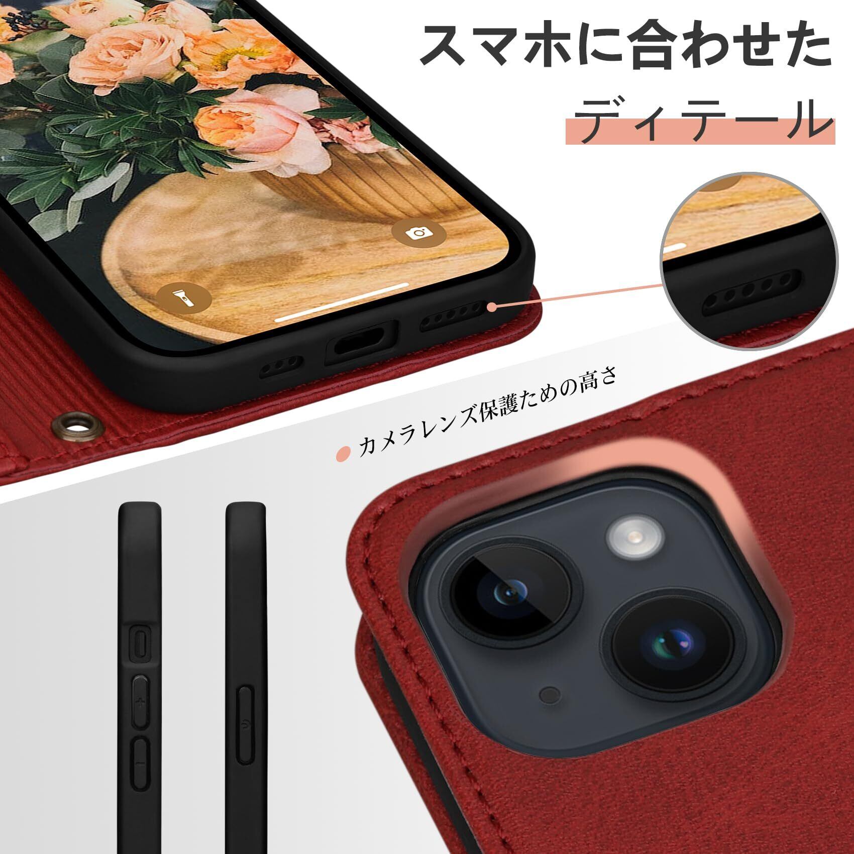 【新着商品】Rssviss iPhone 15 用 ケース 手帳型 iPhone 15 専用 手帳型ケース アイフォン 15 用 ケース 手帳型 マグネット式 iphone15 専用 ケース 手帳型 カード収納 アイフォン 15 用 手帳型 ケース スタンド機能 iPhone 15 用 手帳ケース 軽量 iPhone 15 専用 ケース 財布型 薄型 6.1インチ適応 W1 レッド