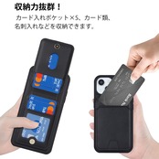 【リムーバブルカードケース】◀ケース背面には取り外し可能な磁気吸引カードケースが付属し、カードを5枚収納できる。たとえば、スイカカードなどの毎日の重要なカードや現金は簡単に保管できます。iPhoneシリーズ専用に設計されているので、ケースを装着したまま、音量ブボタン、カメラ、コネクターなどのを自由に使えます。実用性が高いです。◀横置きスタンド機能:取り外し可能なカードスロットは、横画面でも縦画面でも簡単に実現できる携帯電話スタンドに簡単に変換できます。映画を見たり読んだりすることで手を解放できます。
