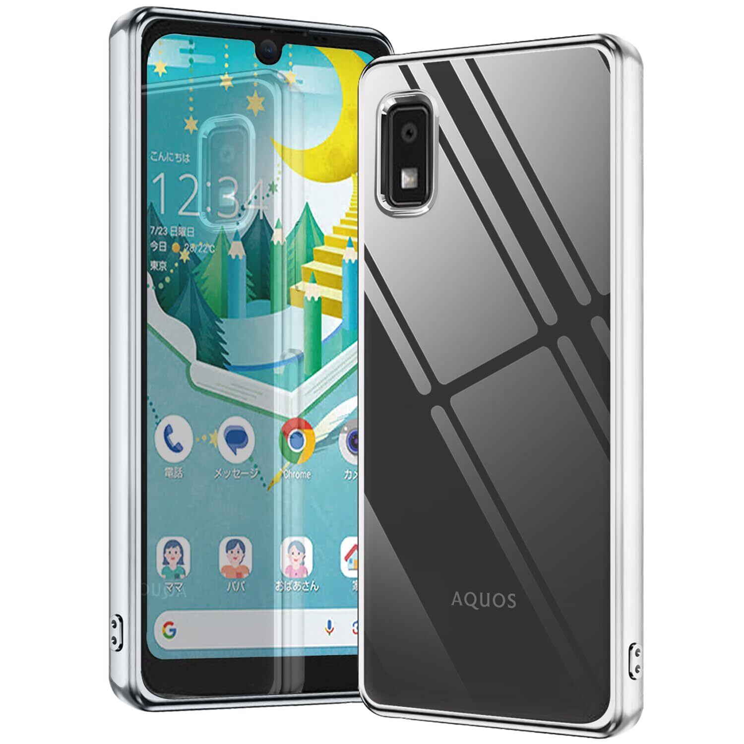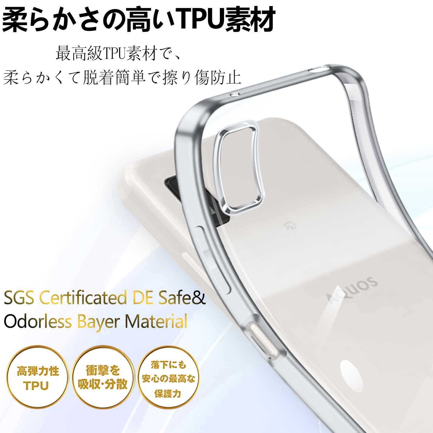【新春セール】aquos wish3 ケース 透明 クリア A302SH SH-53D ケース sh53d スマホケース 耐衝撃 アクオスwish3 カバー 携帯ケース スマホ 可愛い aquosウィッシュ3ケース tpu ラップホール付き(シルバー)