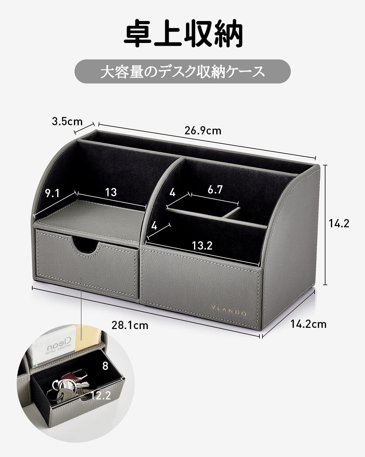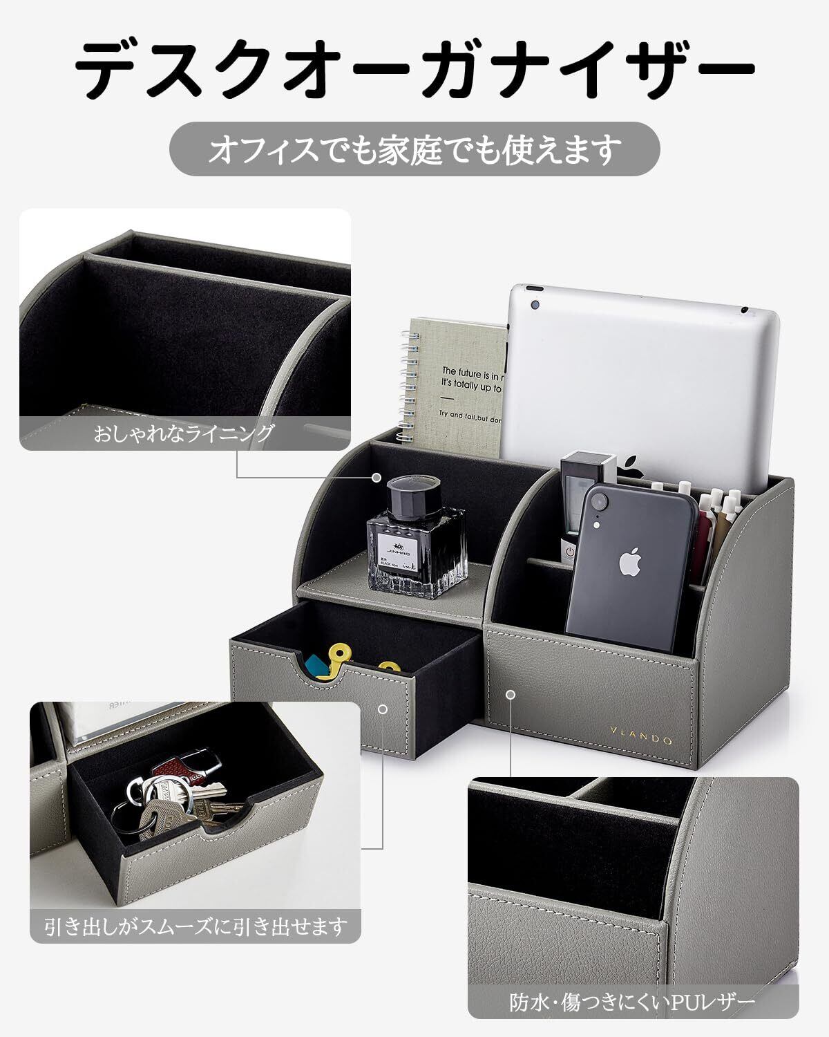 Vlando デスクオーガナイザー 卓上収納 ペン立て リモコンラック 小物入れ (グレー)