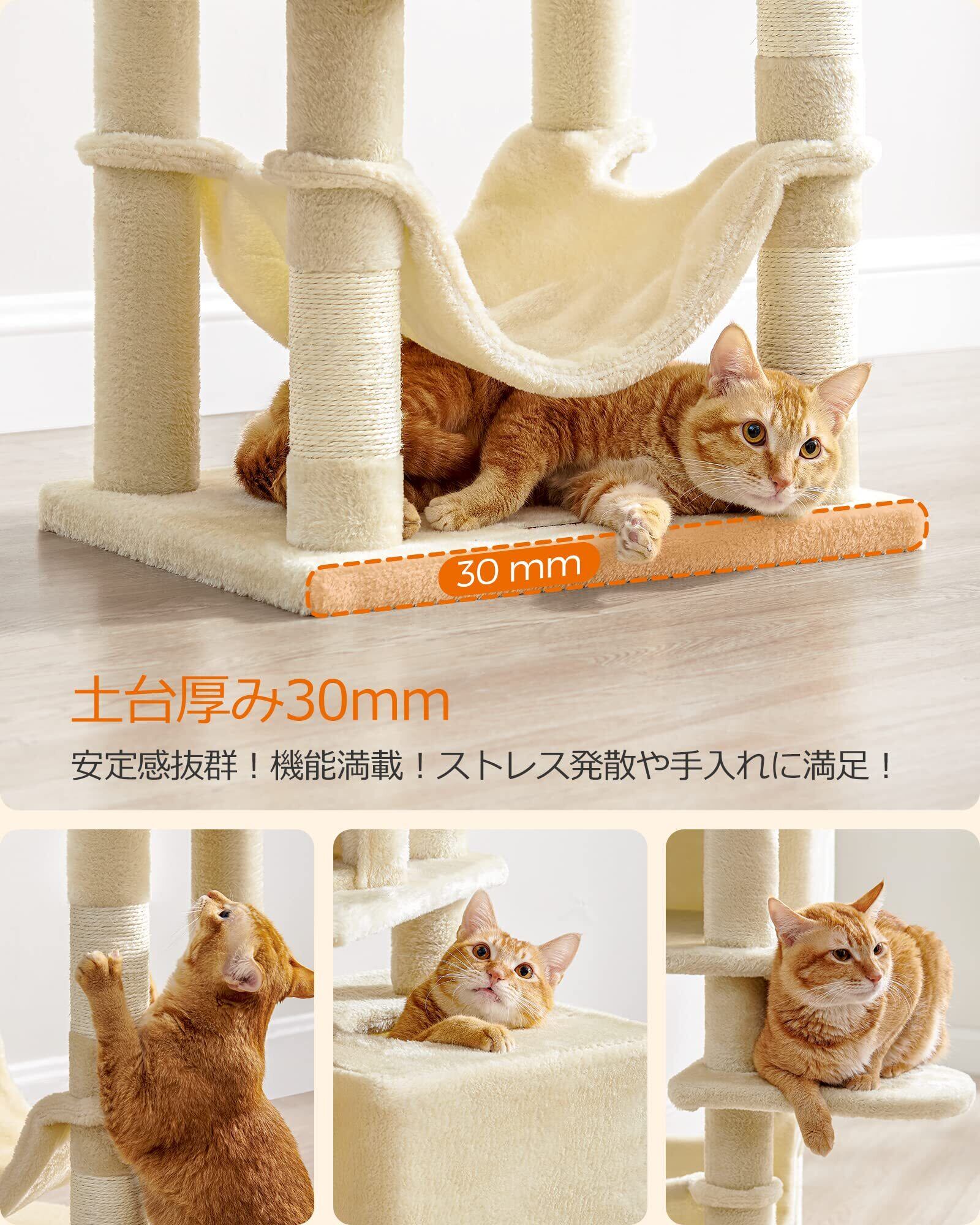 【在庫処分】FEANDREA キャットタワー 猫タワー スリム 大型猫 多頭飼い 据え置き 省スペース ハンモック付き 爪とぎ 運動不足解消 高さ155CMベージュ PCT192M01 | nico3588