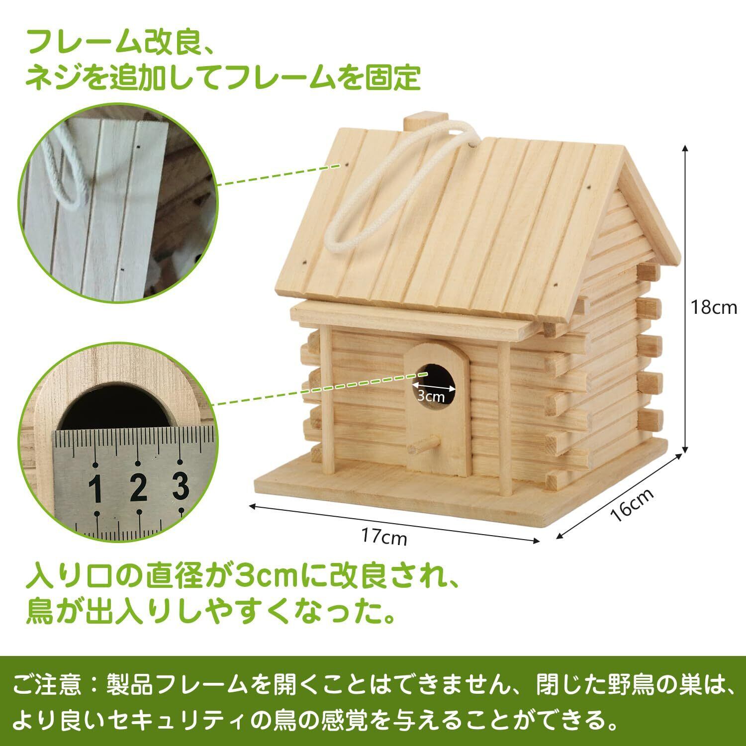 aleawol 野鳥用巣箱 完成品 鳥の巣箱 天然木材 ハンギングバードハウス 屋外 巣箱 野鳥への餌やり、親子体験、家の装飾に適用する(サイズ17x16x18cm/穴の直径3cm)