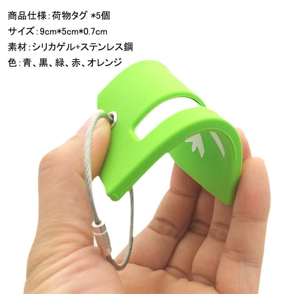 【商品仕様】荷物タグ *5個 サイズ:9cm*5cm*0.7cm, 素材:シリコ+ステンレス鋼,色:青、黒、緑、赤、オレンジ。