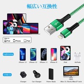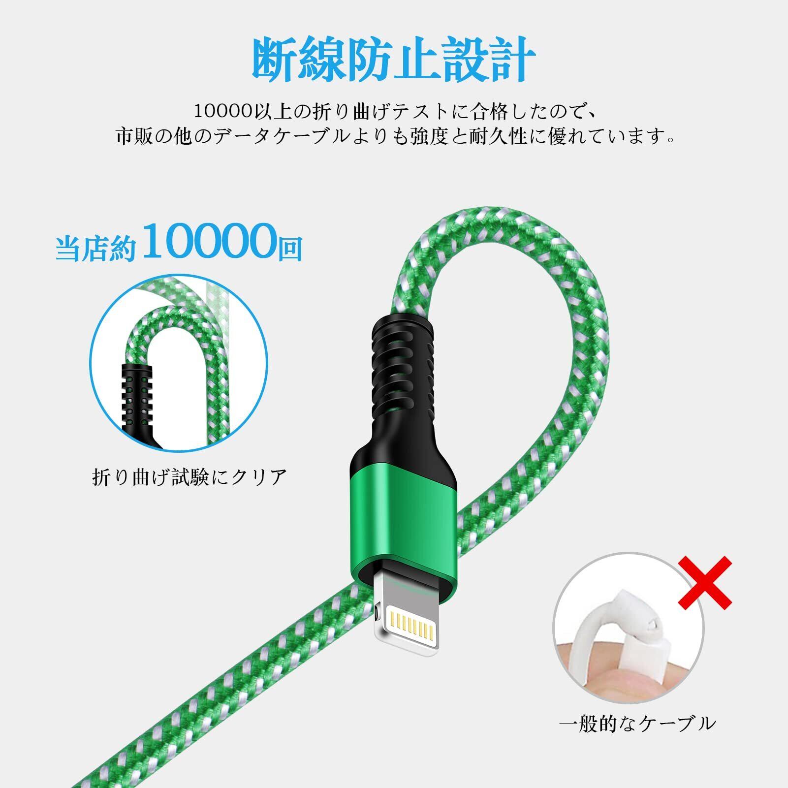 【高品質材質、断線防止】ライトニングケーブルの外部が高品質のナイロン編み材質を採用し、数千回以上の折り曲げテストに合格したので、市販の他のデータケーブルよりも強度と耐久性に優れています。また、USB ライトニングケーブルの内部にはアルミ箔は耐磨耗性に優れて、長年にわたり御愛用頂けます。