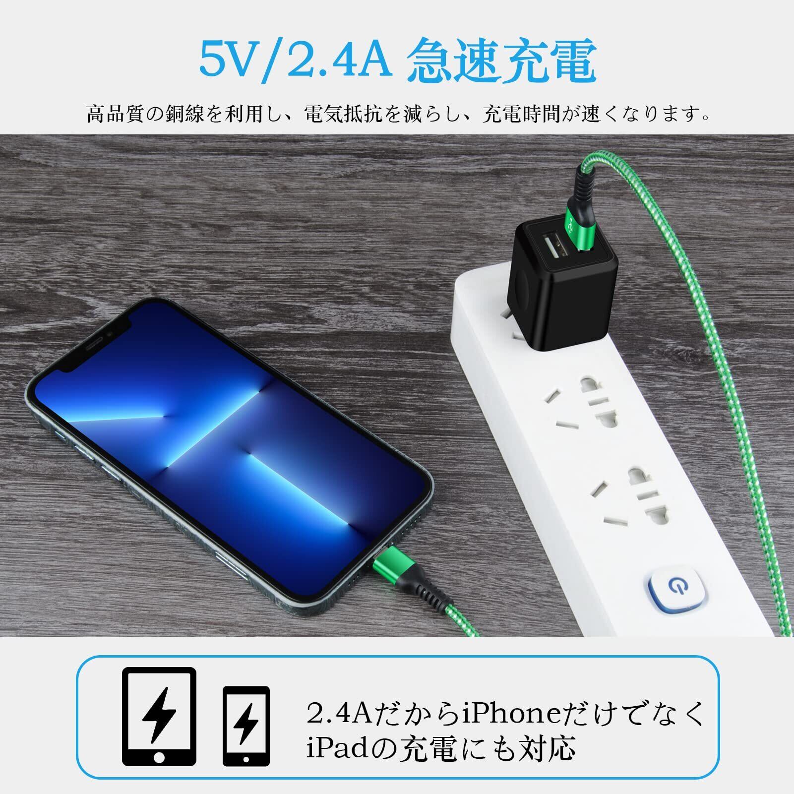 【急速充電、データ同期】iPhone 充電ケーブルが5V/2.4Aの急速充電に対応しています。高品質の銅線を利用し、電気抵抗が減少し、充電時間が速くなります。また、こちらのじゅうでんケーブルはUSB 2.0経由で最大480Mbpsの高速データ同期を実現できます。