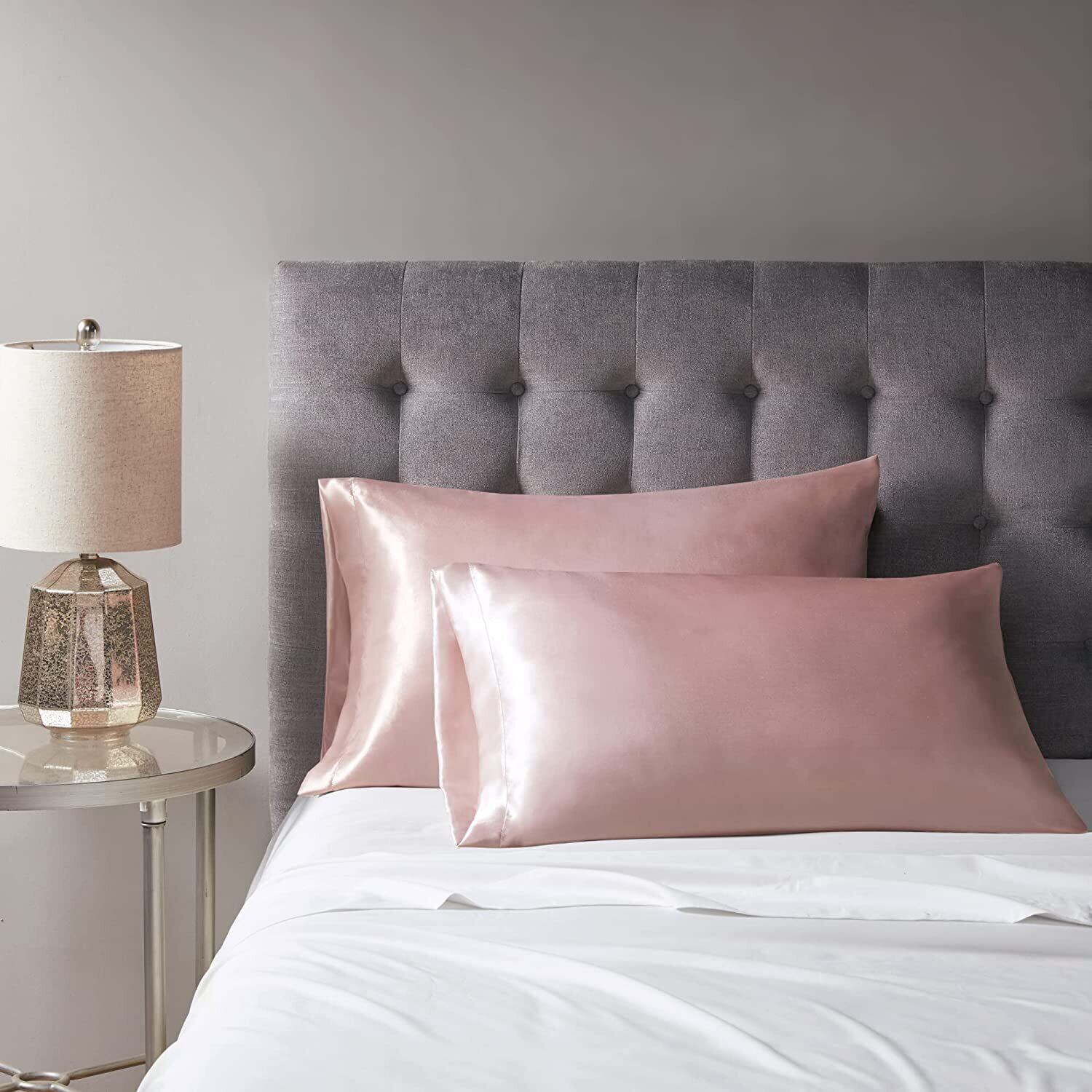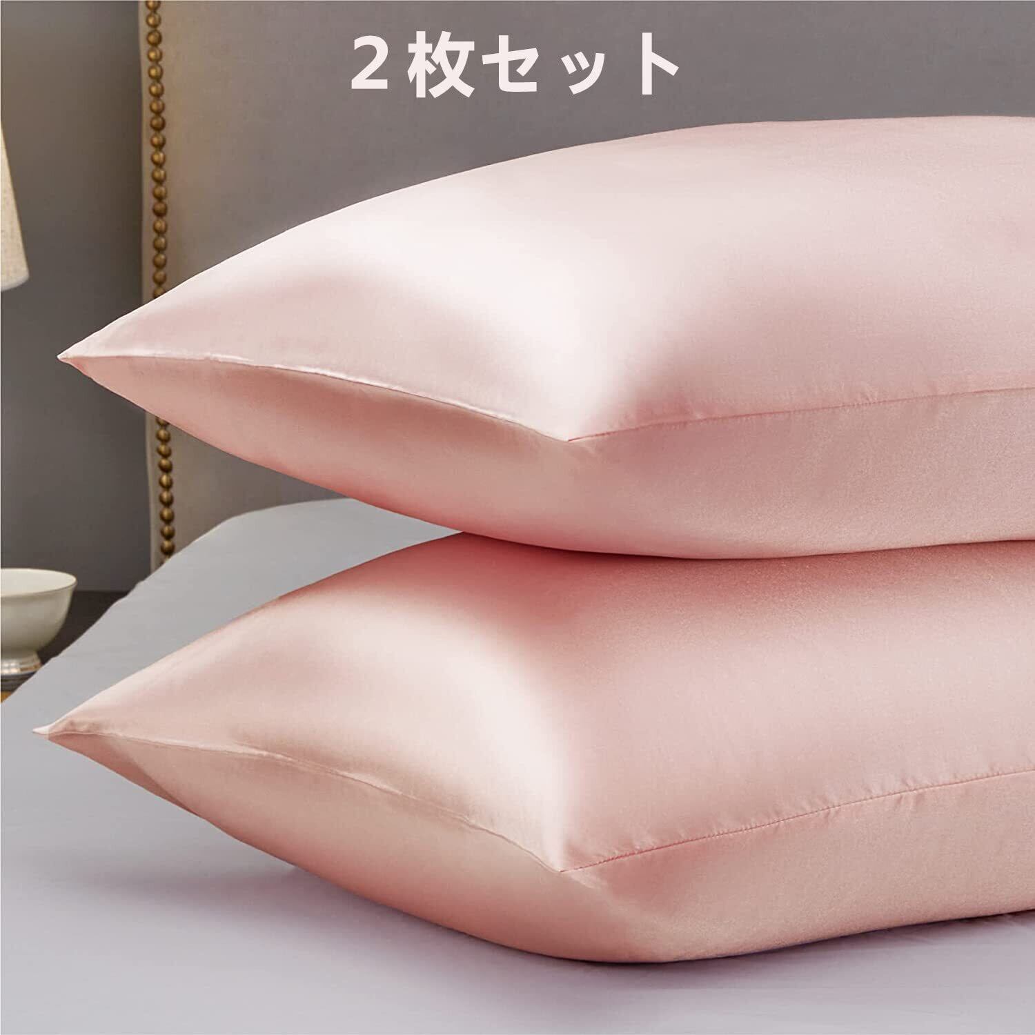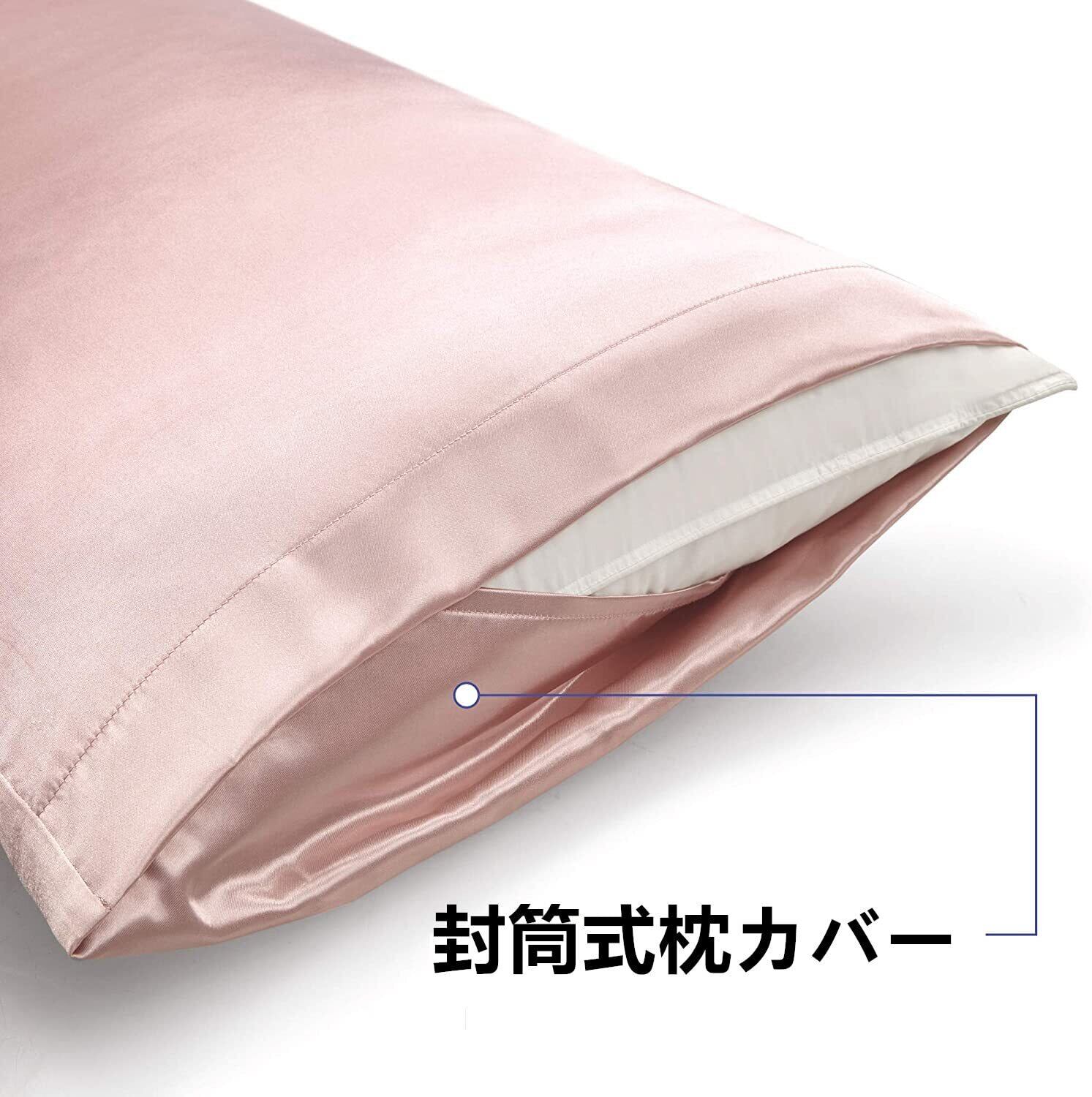 枕カバー 2枚セット サテンの枕カバー 封筒式ピローケース 美肌 美髪 両面シルクタイプ 滑らかな材質 静電気防止 (50*70, ローズ)