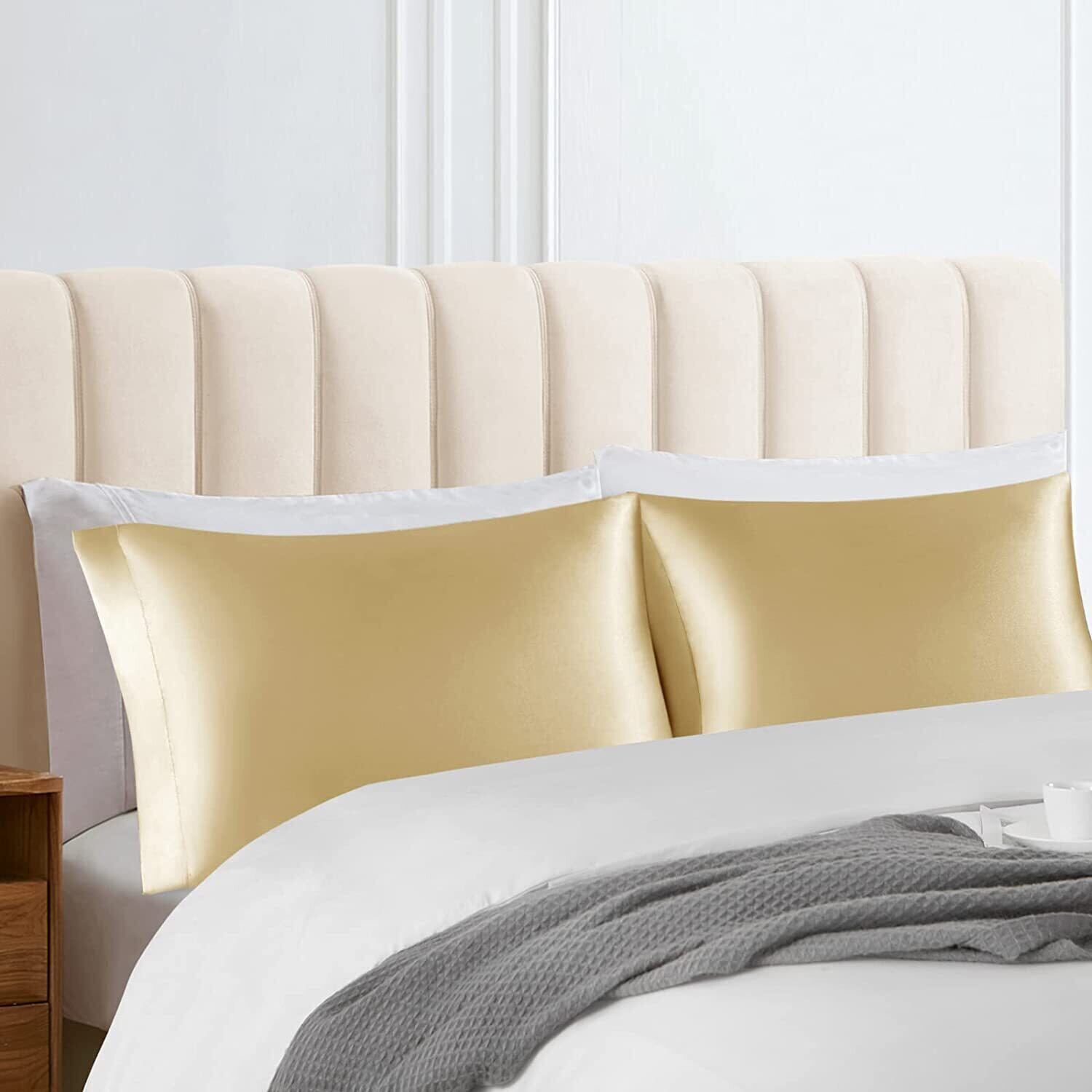 枕カバー 2枚セット サテンの枕カバー 封筒式ピローケース 美肌 美髪 両面シルクタイプ 滑らかな材質 静電気防止 (50*70, シャンパン)
