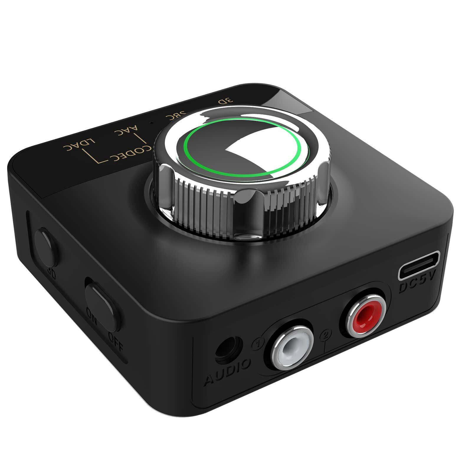 【3D 機能 】Bluetoothオーディオレシーバーの[3D]ボタンを押すと、3Dオーディオをオンまたはオフにできます。 3Dに切り替えると、緑色のLEDが点灯します。