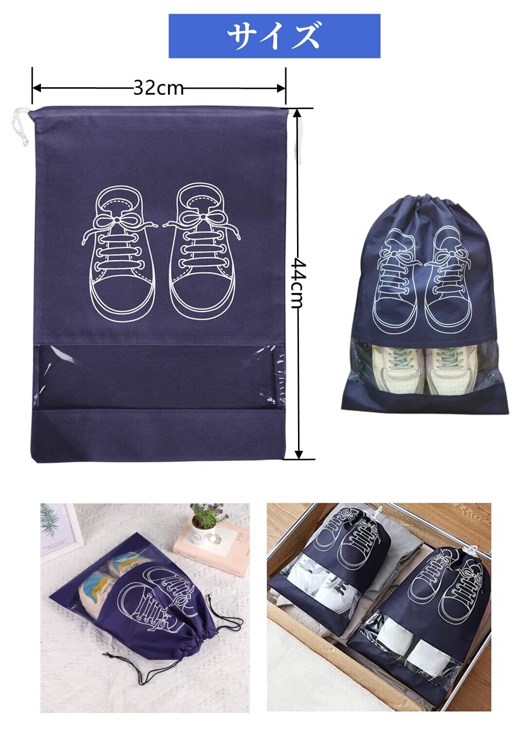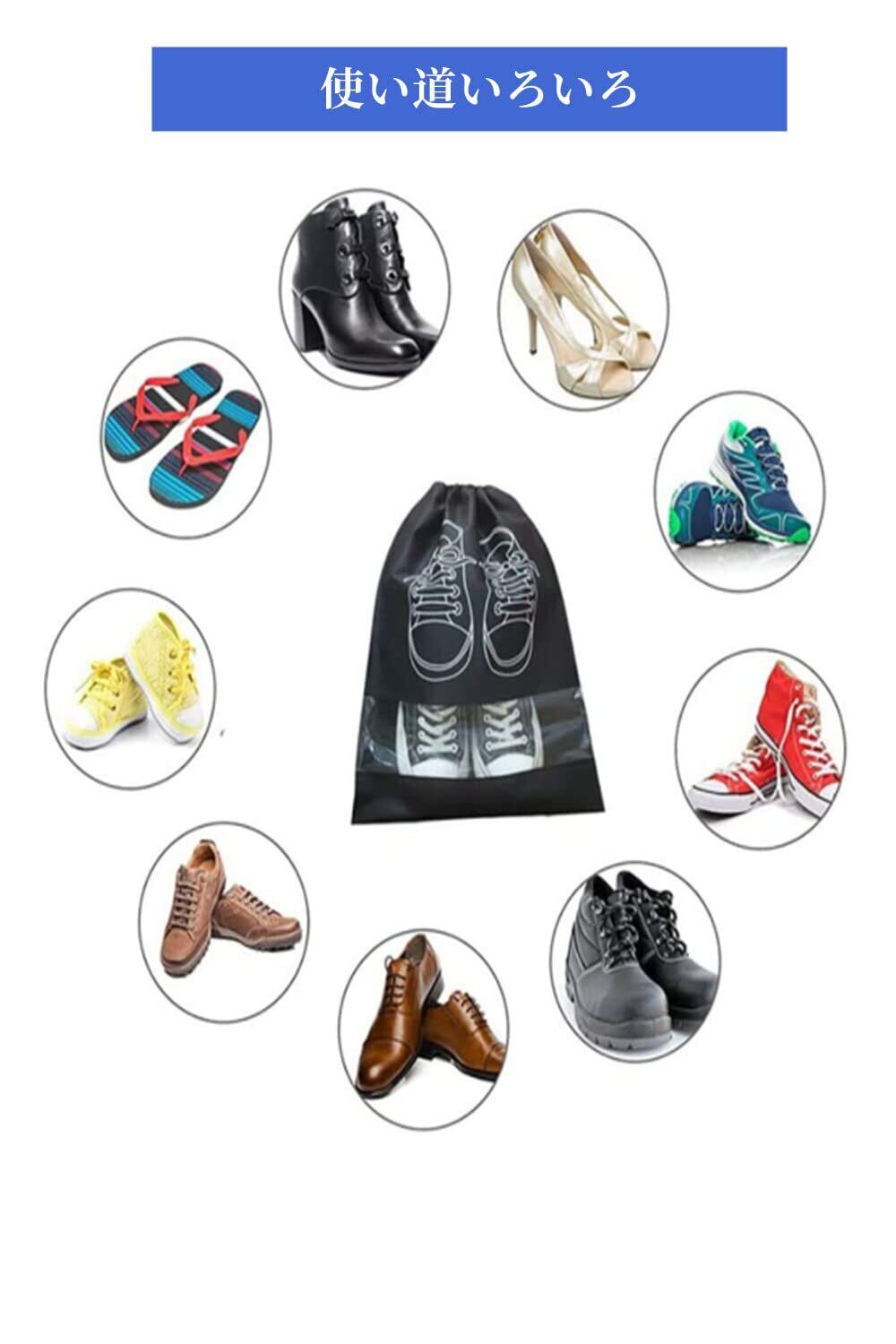 【パッケージ内容】シューズバッグ 4枚セット、色:ブラック、空色、紺、ライトグレー 、大サイズ: 約42cm×28cm