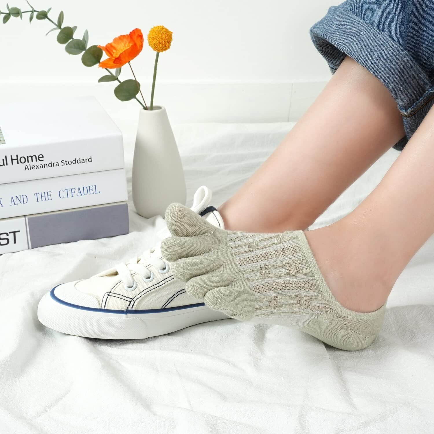 [DAMILY] 5本指ソックス レディース 夏用 靴下 五本指 綿 くるぶし スポーツ用 蒸れない 脱げない スニーカーソックス 女性 ショート丈 くつした おしゃれ 夏 五本指靴下 カラフル 5足セット 22-25cm