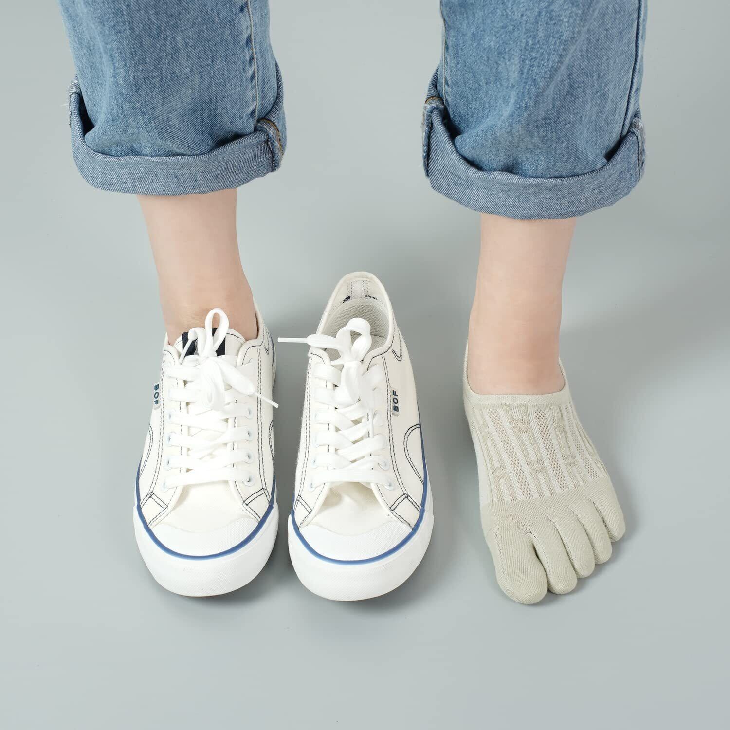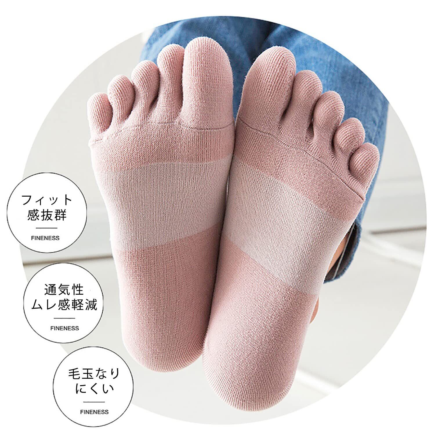 【快適に履ける五本指ソックス レディース】:メイン素材:80%綿 サイズ情報:フリーサイズ22-25cm 〇〇綿を使用した、足指分けで通気性や吸湿性が更にアップし、スポーツなど汗かきやすい時にぴったりなレディース 靴下 5本指。履き心地も柔らかく、肌への負担も少ない靴下 レディース くるぶし 夏用。