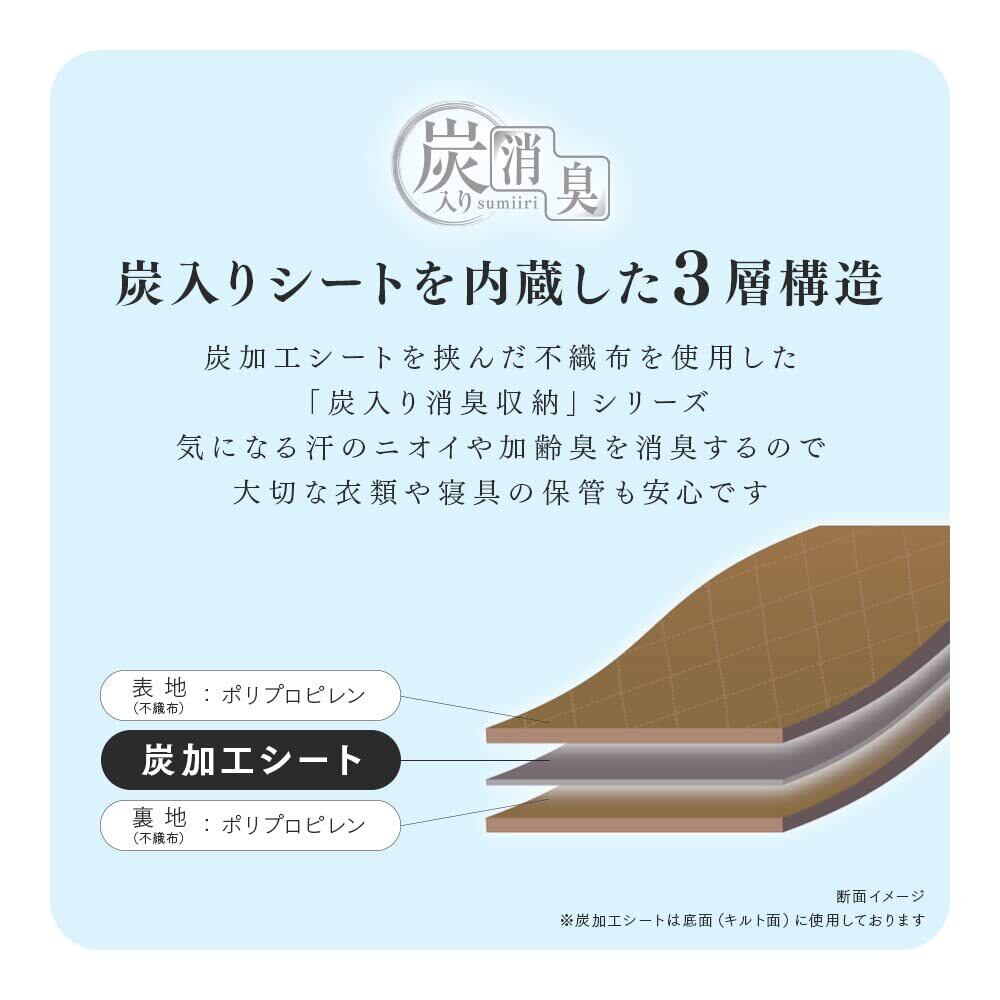 【炭のチカラで消臭】炭加工シートを挟んだ3層構造収納ケースで、気になる汗のニオイ・加齢臭を消臭!※炭加工シートは底面(キルト面)に使用しています。
