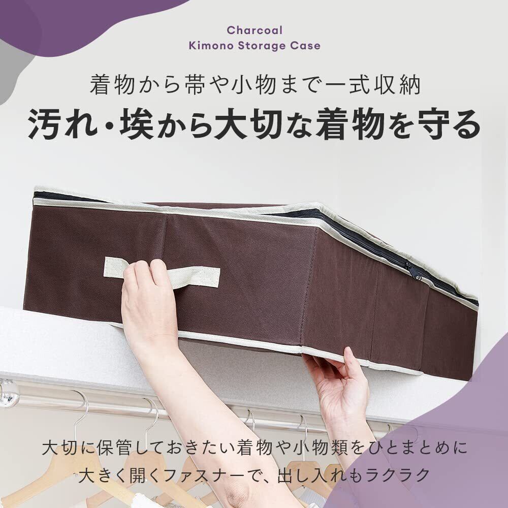 【数量限定】アイメディア(Aimedia) 着物一式収納ケース 着物収納ケース 炭入り消臭 衣類収納 収納ボックス 衣類用 収納袋 不織布 持ち手付 防塵 帯 浴衣保管 炭加工シート 加齢臭 3層構造