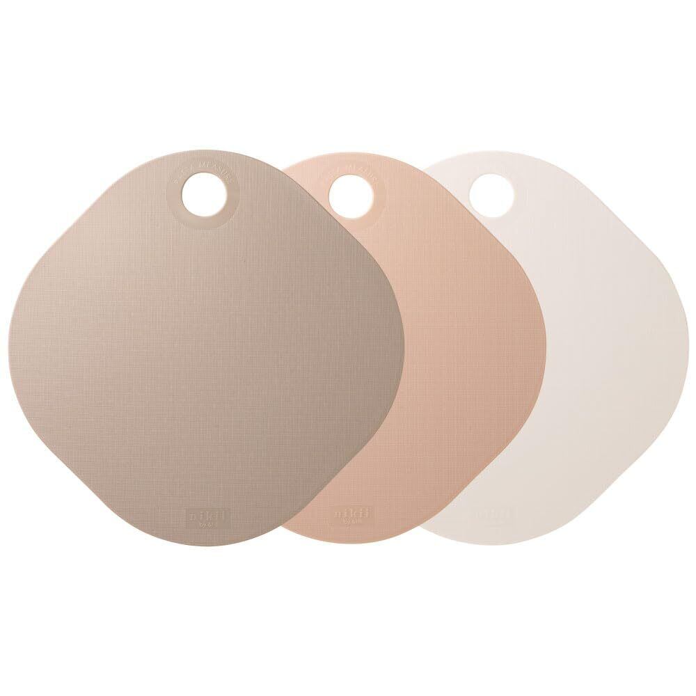 アンドエヌイー(&NE) カッティングボード nikii ベージュ テラコッタ ブラウン 3枚セット 幅18.5cm×奥行き18.5cm×厚さ0.3cm まな板 日本製 食洗機対応 抗菌 小さい ミニまな板 丸 四角 フック付き おしゃれ 使い分け NIK-188-BTB