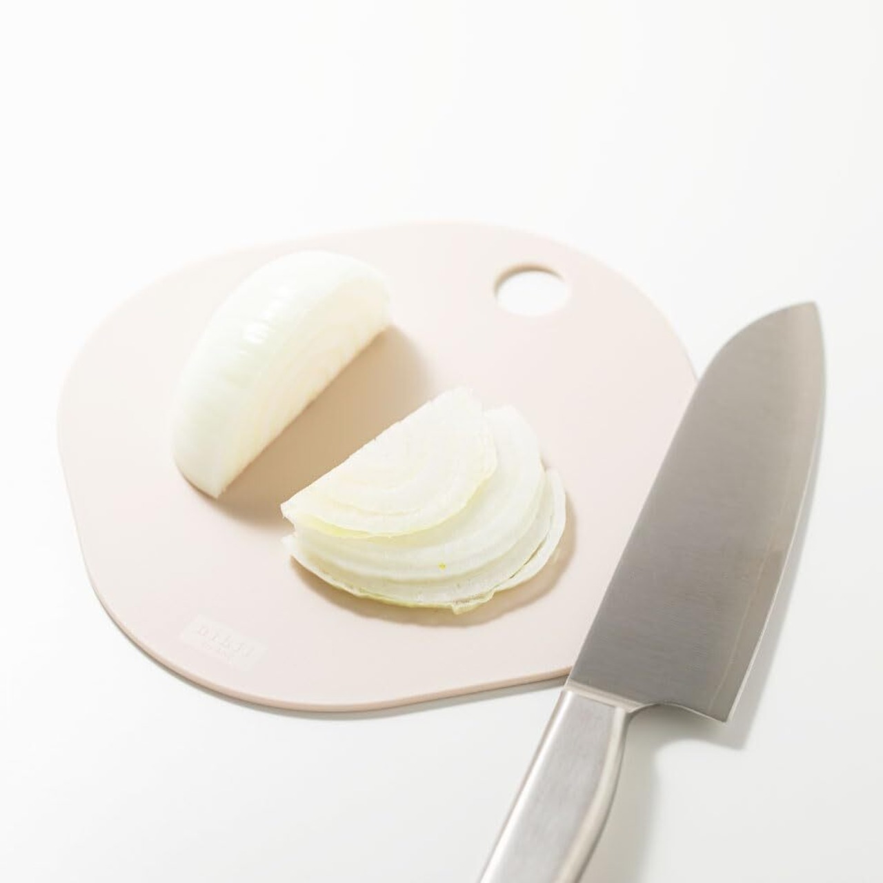 使いがっての良いミニサイズのまな板に機能をたくさん詰め込みました。くるくる回しながら違う具材をカットできる丸いまな板と、フライパンやお鍋に移し易い角がある四角いまな板の良いとこ取りの形状。