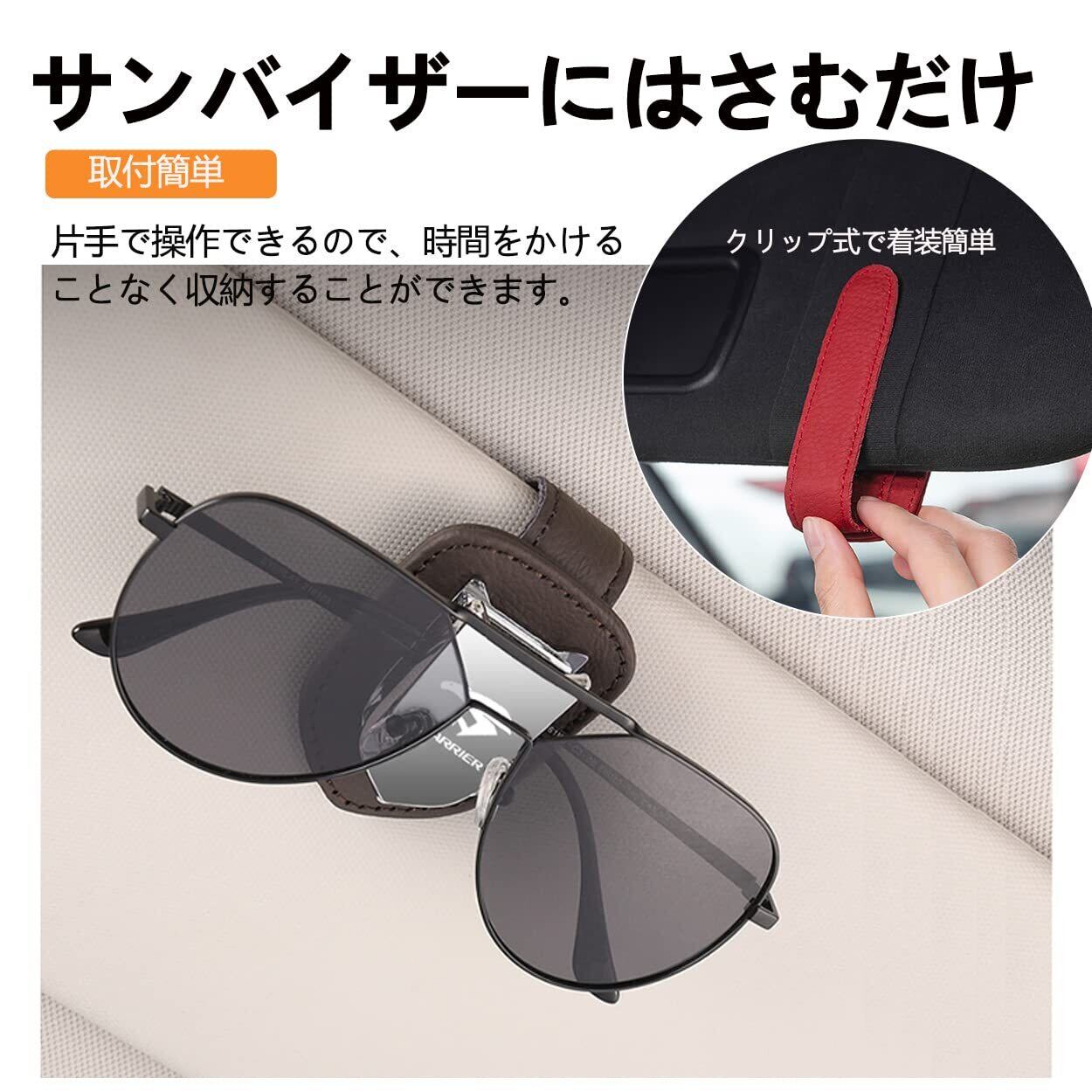 ハリアー 用 メガネホルダー レザー サングラスクリップ カーサンバイザー 用 サングラス 眼鏡 チケット カード クリップ ホルダー メガネクリップ 車眼鏡ホルダー 取り付け簡単 選べる4色 (Brown)