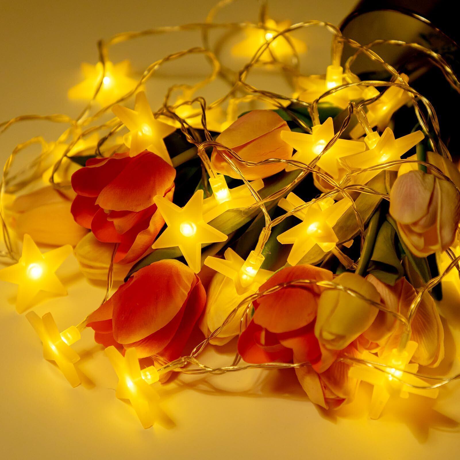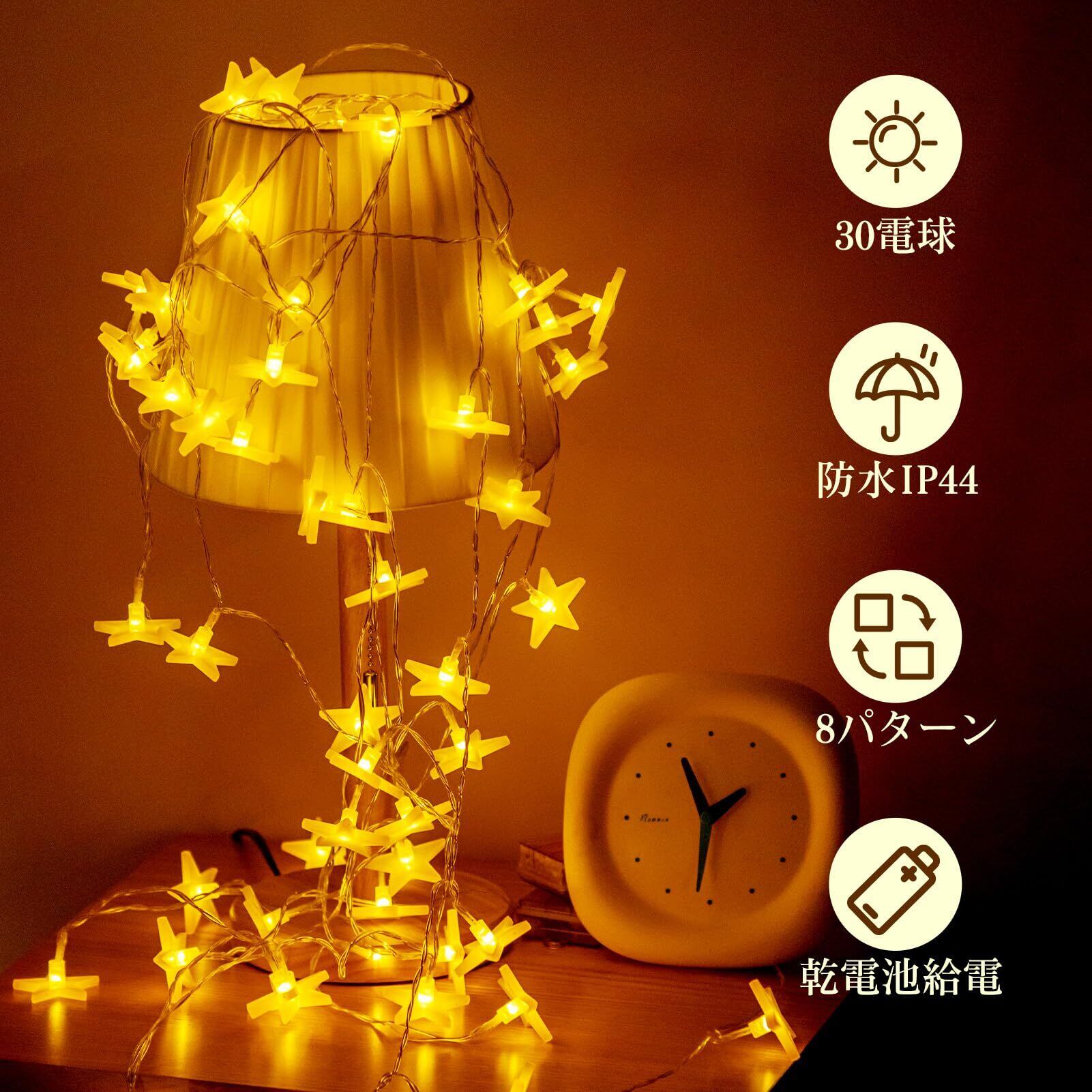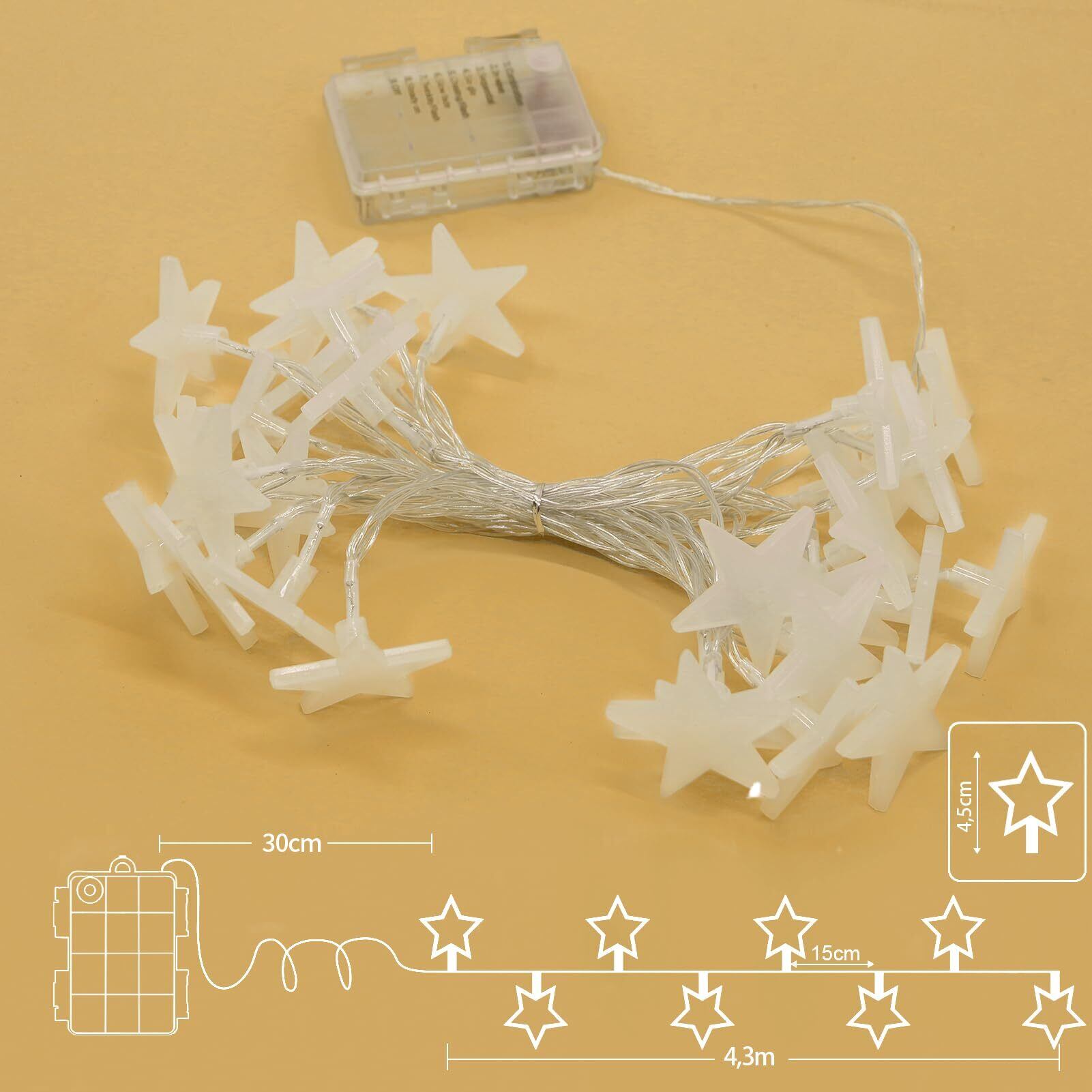 育のさち イルミネーションライト LED フェアリーライト 星ライト 電池式 星型 30LEDライト 省エネ 8種照明モード 防水IP44 クリスマスツリー飾り カーテンライト 飾りスター ガーデン・イベント・パーティー・結婚式・学園祭最適 (ウォームホワイト/4.5m /30球) クリスマスストリングライト