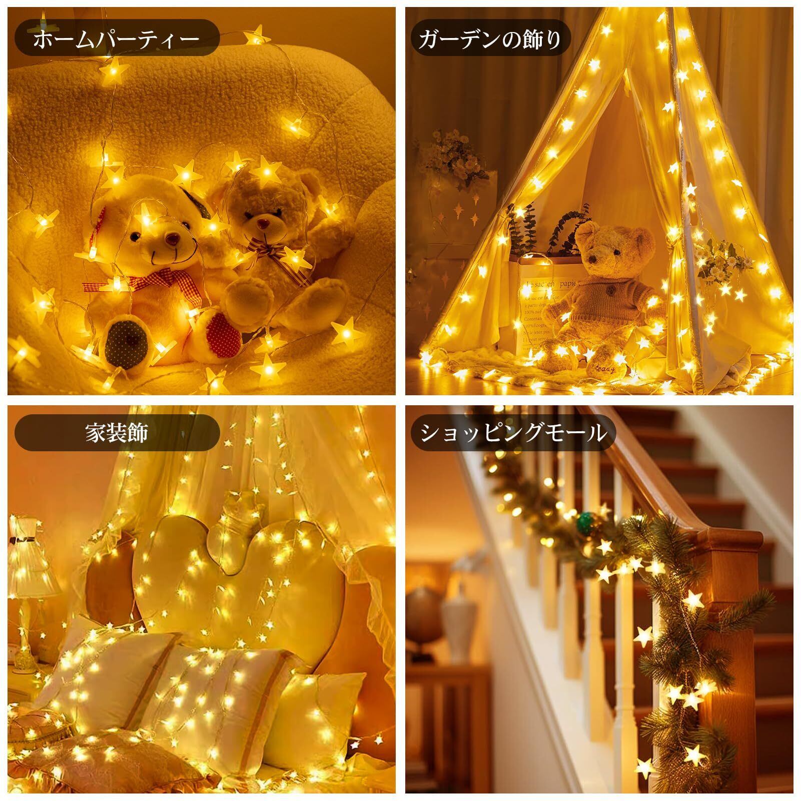 【新着商品】育のさち イルミネーションライト LED フェアリーライト 星ライト 電池式 星型 30LEDライト 省エネ 8種照明モード 防水IP44 クリスマスツリー飾り カーテンライト 飾りスター ガーデン・イベント・パーティー・結婚式・学園祭最適 (ウォームホワイト/4.5m /30球) クリスマスストリングライト