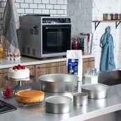 このデコ缶は、ケーキ用の業務用品として理想的です。内径18cm、深さ6cmのサイズは、さまざまなケーキの型に適しています。ブリキ板素材で、手洗いをしてください。シルバーの色は、シンプルで洗締まりのよいデザインです。