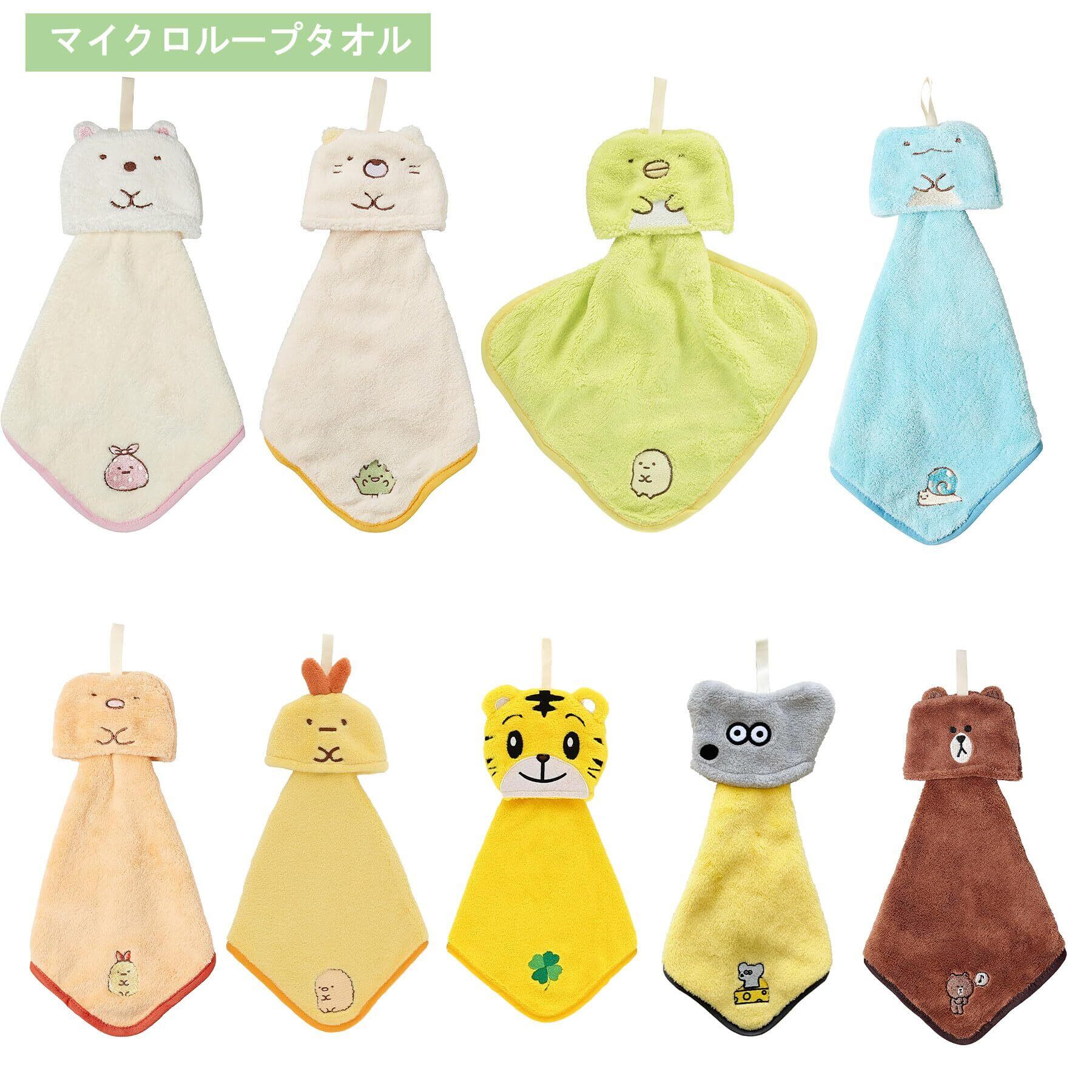 フックに引っかけられる便利なループ付きタオル。 吸水性抜群のマイクロファイバー素材です。 タオルを丸めて顔部分に収納しても可愛いです。