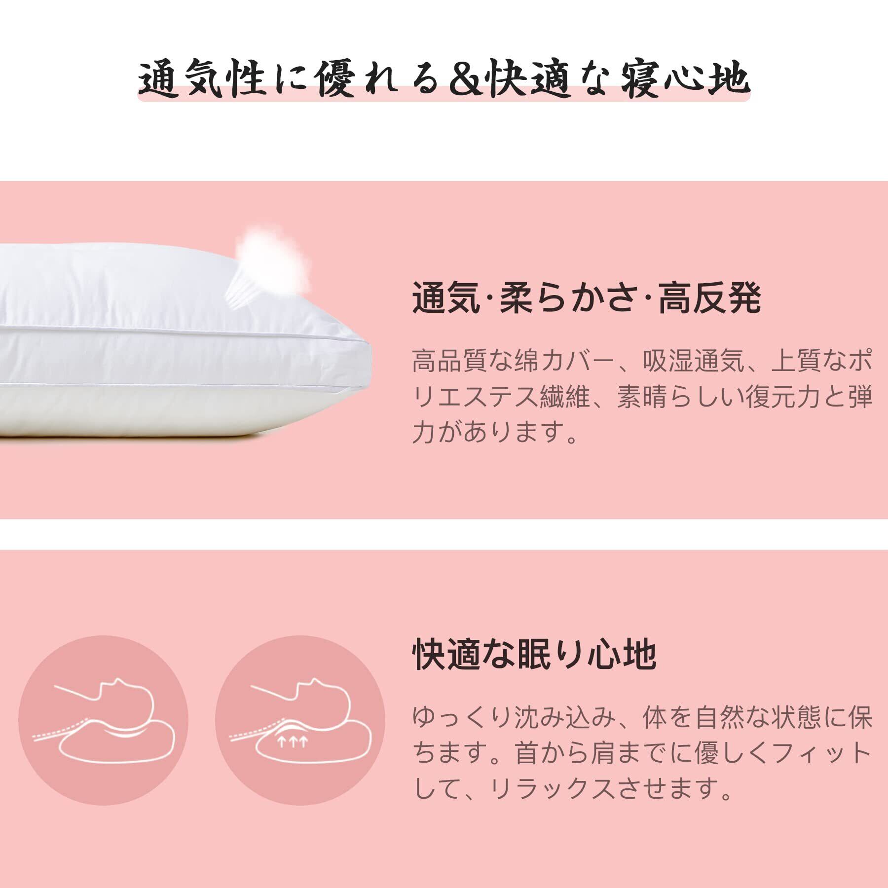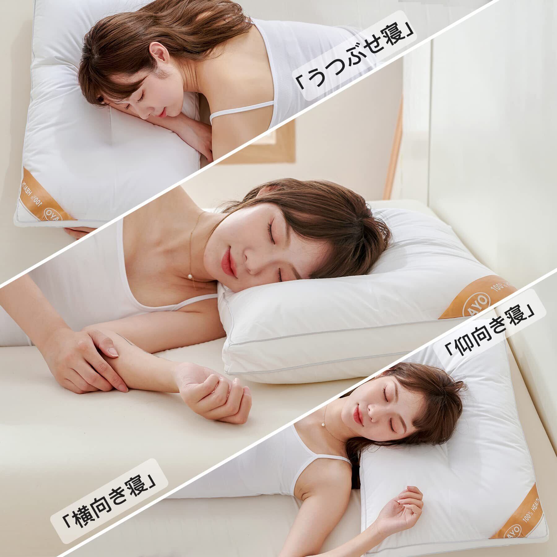 【通気性抜群】AYO枕は上質で通気性抜群のポリエステルを使用されておりますので、汗をかきやすい方も快適に使えますので、ご心配はいりません。エステル 100%。素晴らしい復元力と弾力があって、長いあいだでつかっても決して変形しません。