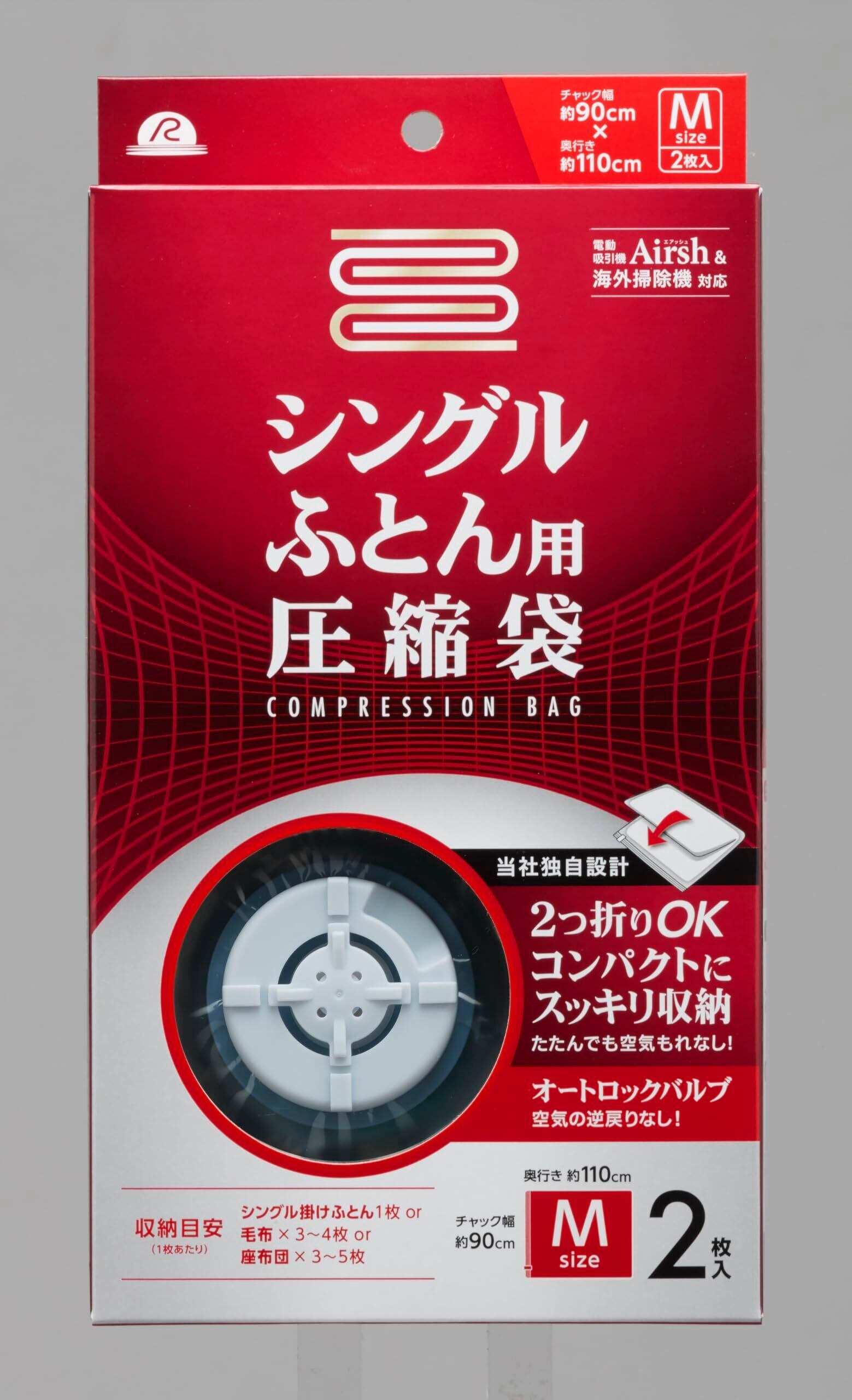 ・電動吸引機(エアッシュ)&海外掃除機対応・オートロックバルブなので、ノズルをあてるだけで簡単に圧縮でき空気の逆戻りがありません。・2つ折りOK、さらにコンパクトに収納できます。