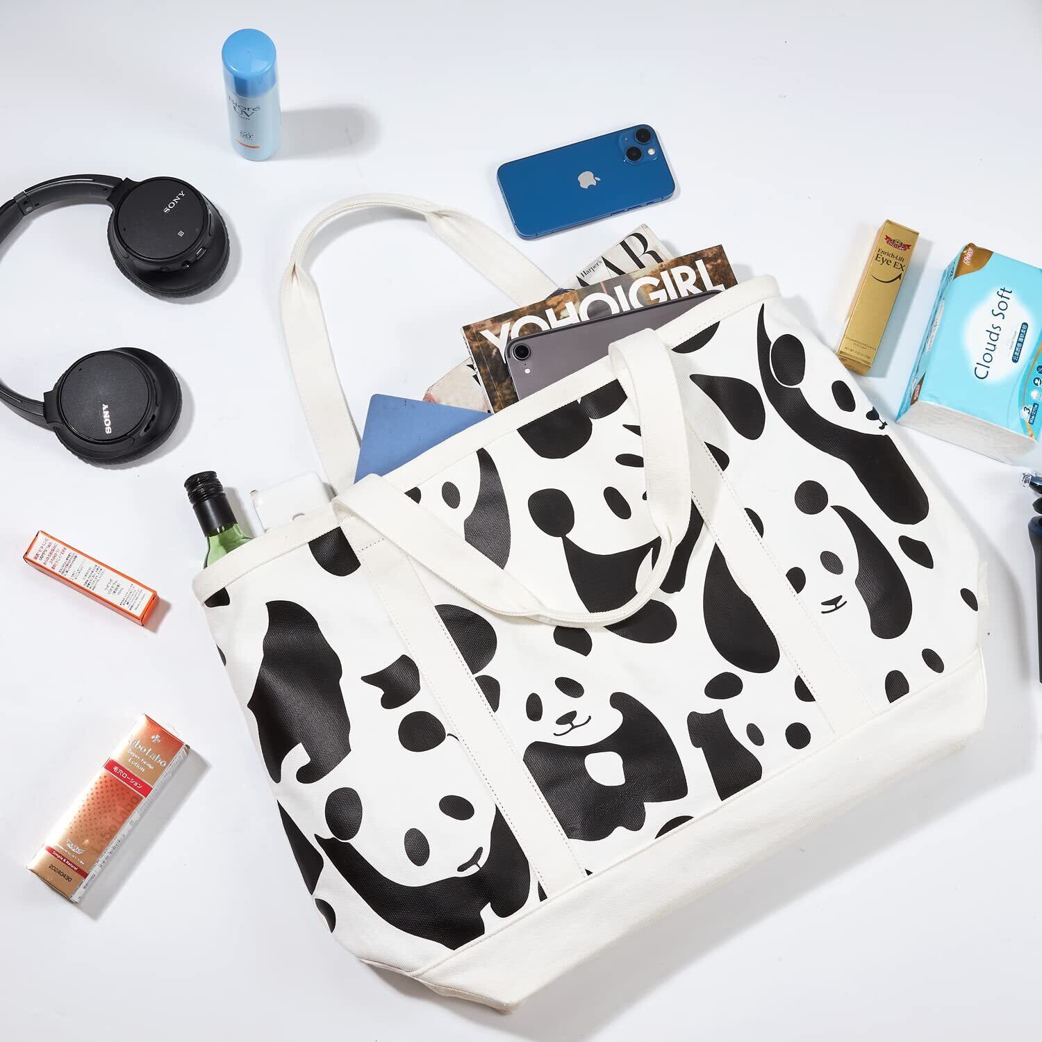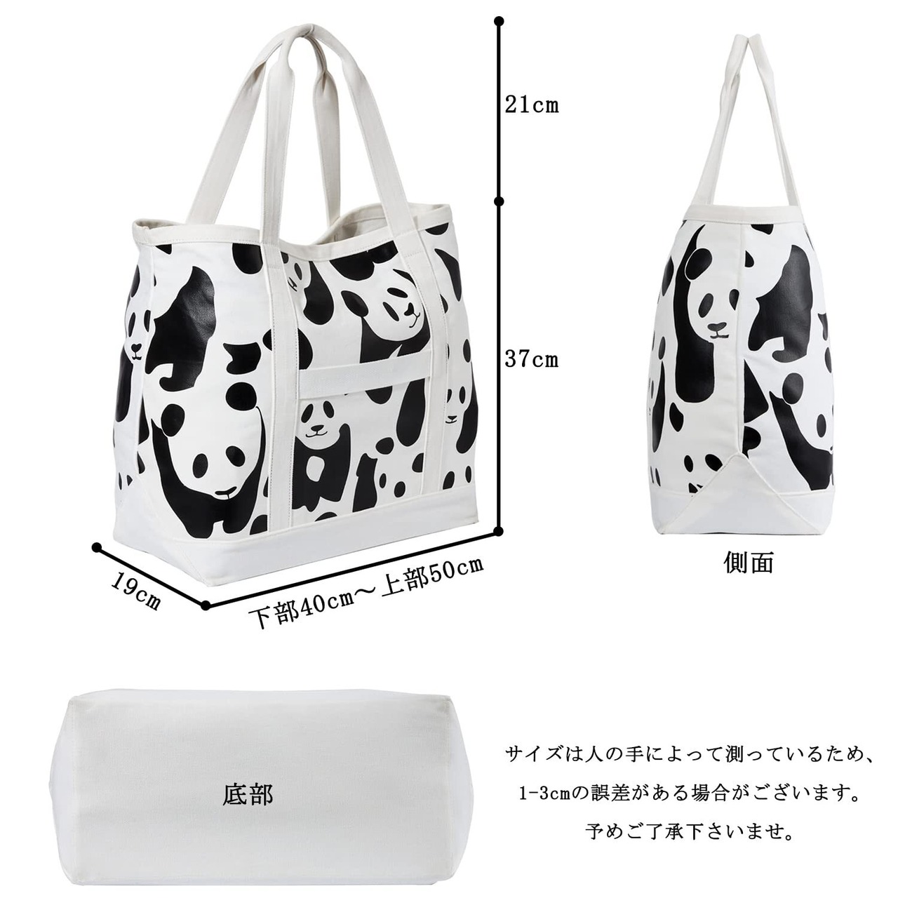[UNISOUL] トートバッグ トート パンダ柄 キャンバスバッグ グローサリー レディース メンズ マザーズバッグ エコバッグ 肩掛けバッグ 通学 旅行 帆布 大容量 多機能 ハンドバッグ 大きさ